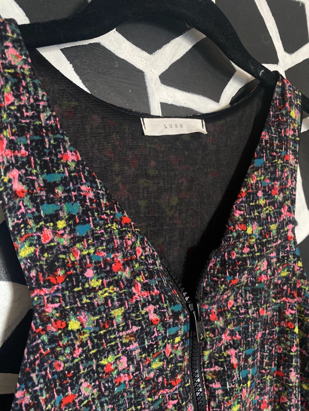 Lush Size L Black Multicoloured Fit and Flare Dress