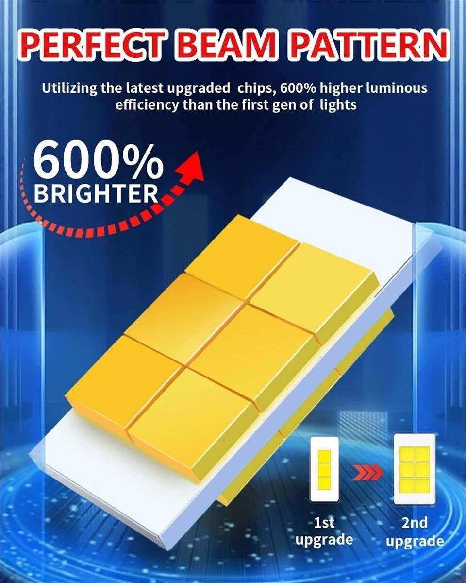 Set of two YGINNO LED headlight bulbs for vehicles. These bulbs provide 6500K bright white light and have a high lumen output for better visibility. They're designed for easy installation and offer 600% brighter illumination than standard bulbs. Includes original packaging.