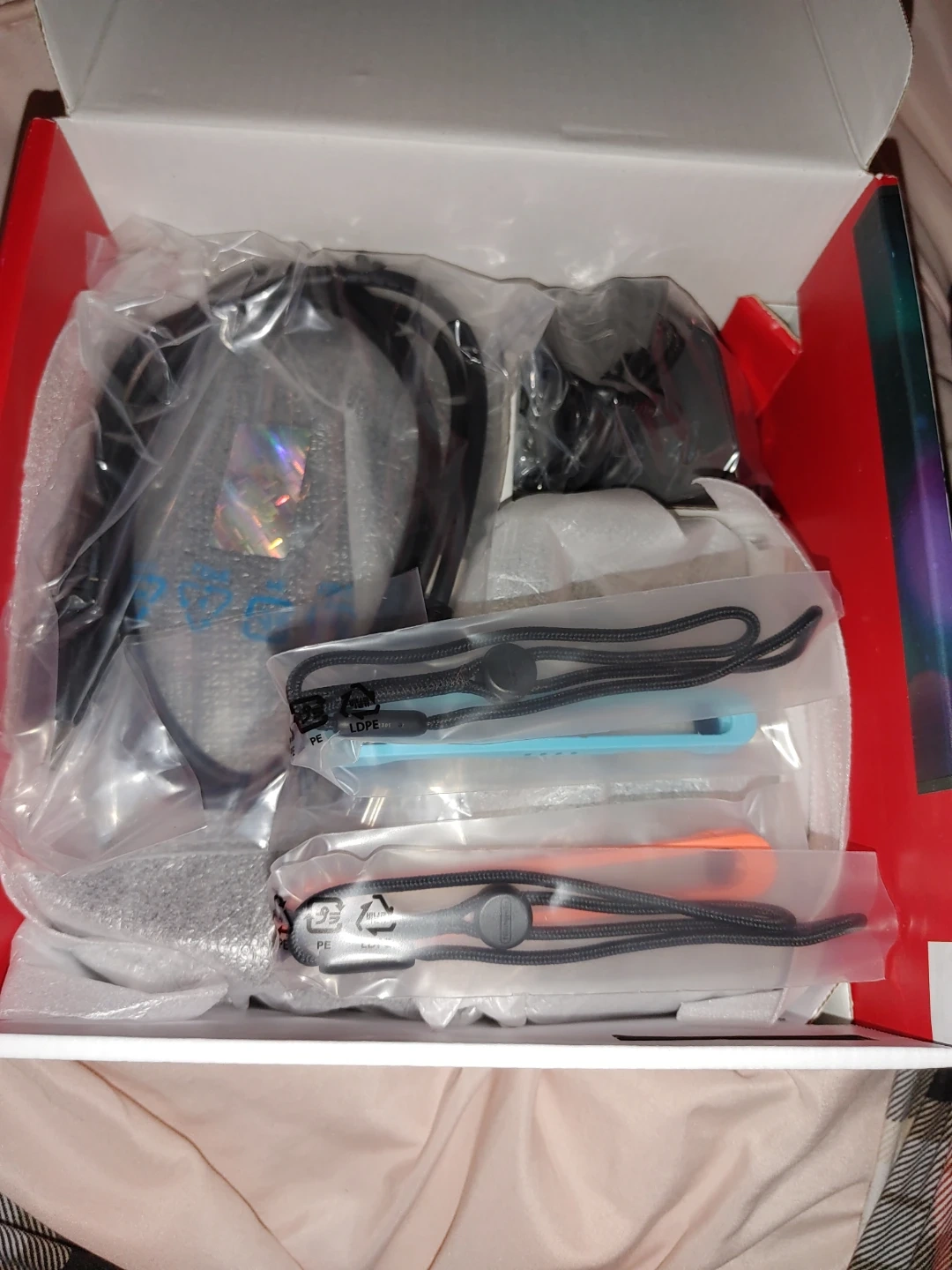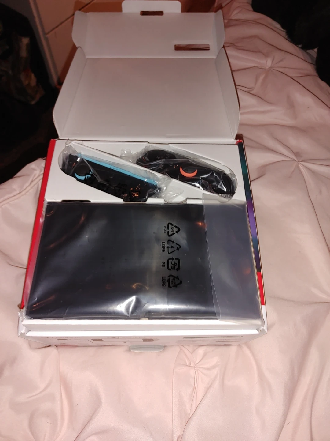 Comes with the Nintendo Switch OLED model console and detachable Joy-Con controllers in neon blue and neon orange. Includes the original box and all included accessories for setup and play. Features a vibrant 7-inch OLED screen for enhanced visuals. Comes with 3 games I have also down loaded a game on the system