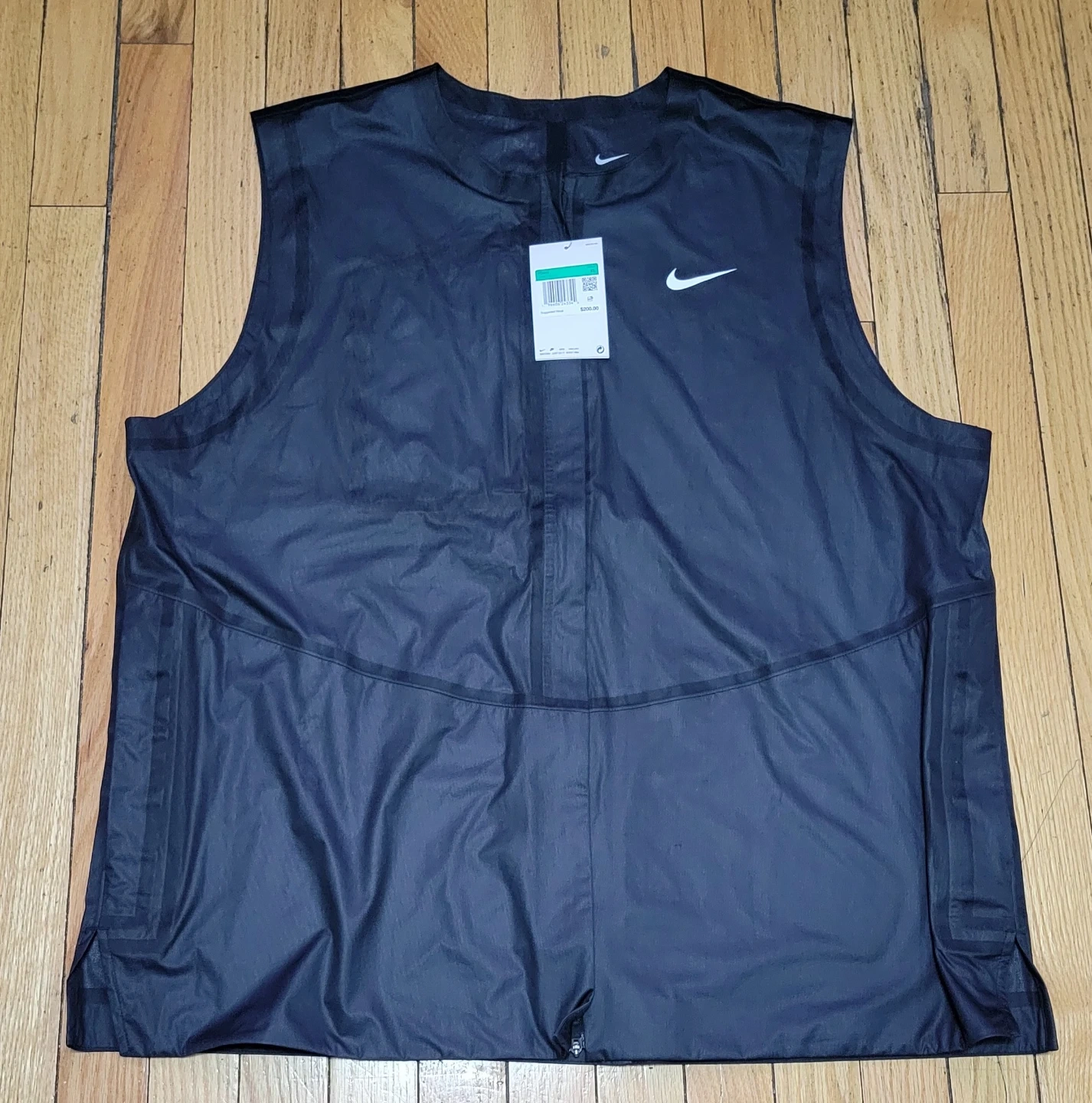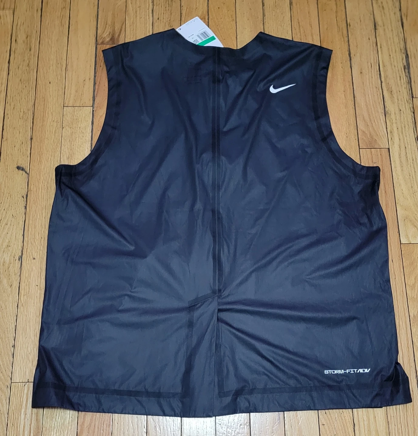 This is a Nike Storm-FIT ADV golf vest in mens XL. It's black and made for performance. It's sleeveless with a full-zip closure.