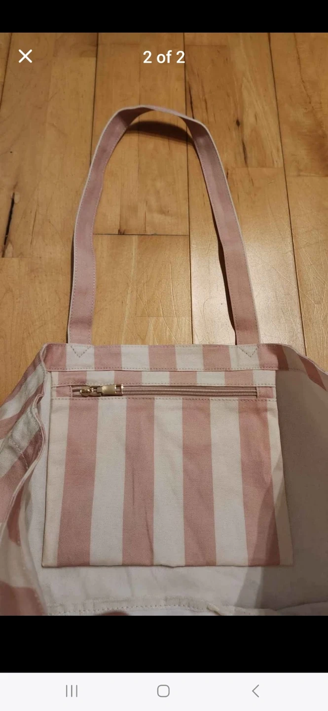 Poppy & Peonies Pink & White Stripes Large Tote Bag (Brand New With Tag)