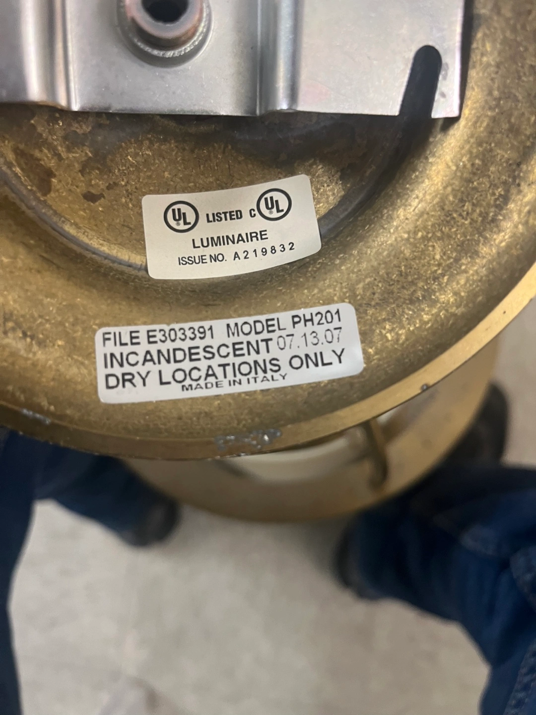 Selling a beautiful luminaire, model PH201. This incandescent light fixture is made in Italy and is suitable for dry locations only. It has a unique design that will add a touch of elegance to any room