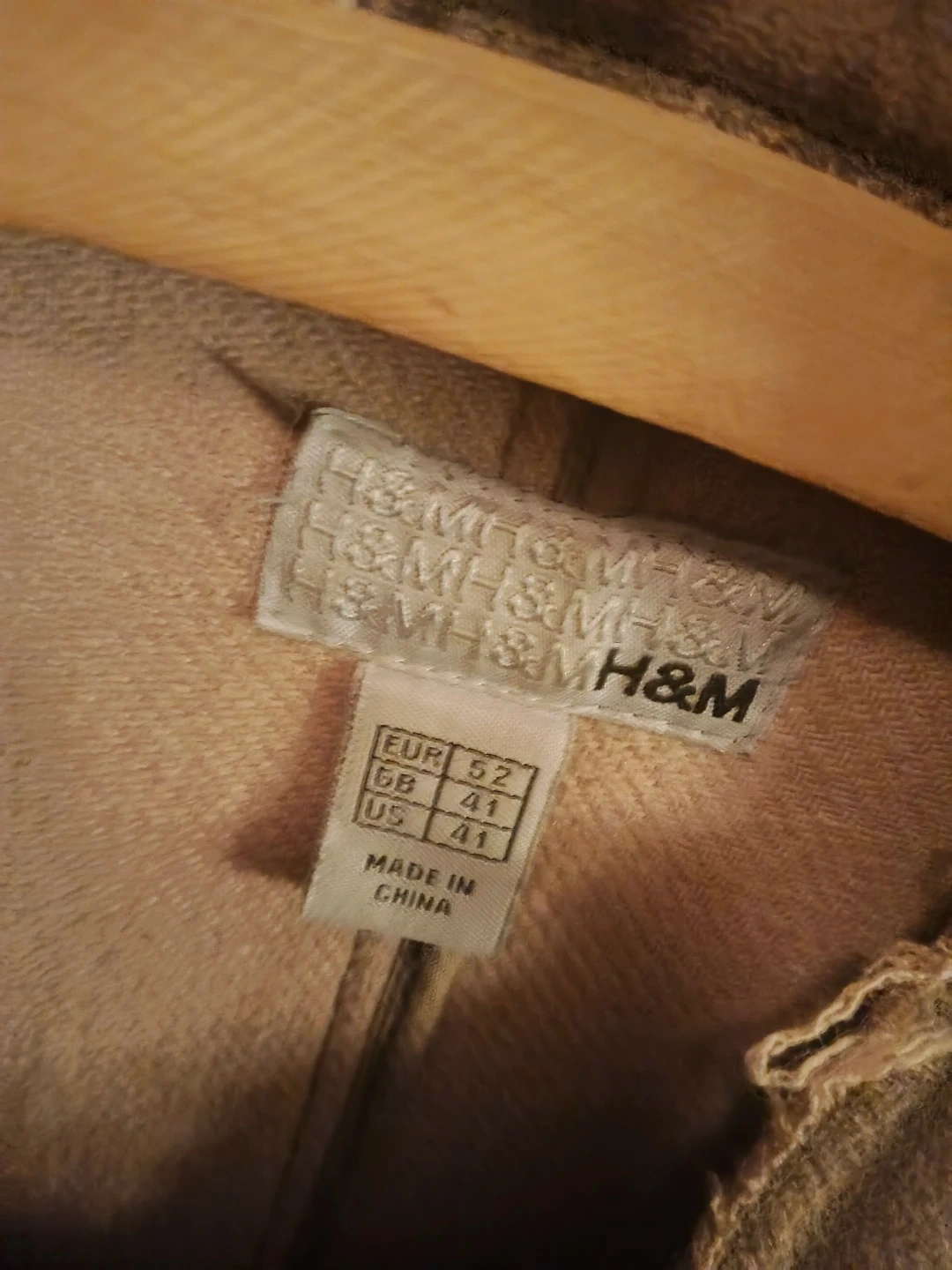 This H&M coat features a stylish double-breasted closure with buttons. Made in China, it's a size EUR 52, GB 41, US 41. It's a great layering piece for cooler weather!