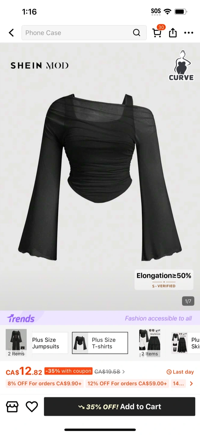 This black SHEIN ICON top has an off-the-shoulder design with elegant ruffles and long bell sleeves. It's made of a delicate fabric, perfect for a stylish evening out. The lace detailing adds a touch of bohemian flair.