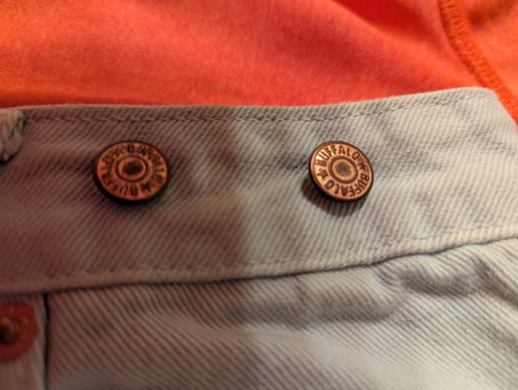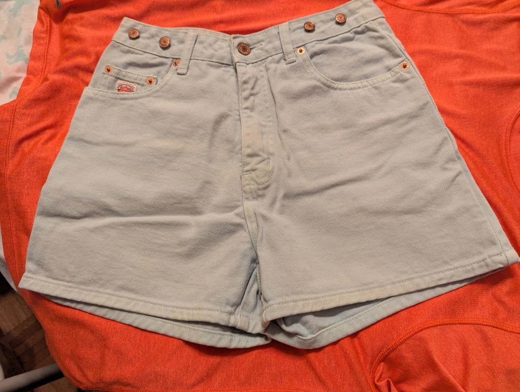 107Cute pair of Buffalo De France denim jean shorts! They're a light blue colour and have a high-waisted fit. Perfect for summer! Size 27. Made in Hong Kong. Located downtown Toronto close to the College subway station.