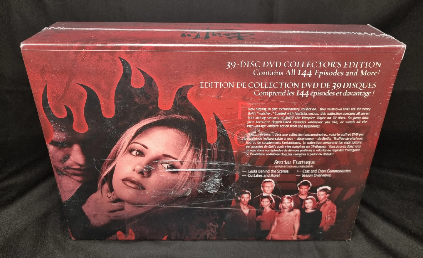 Selling a complete series DVD collector's edition of Buffy the Vampire Slayer! This set contains all 144 episodes and more, spread across 39 discs. It's still sealed in its original packaging, ready for a new fan to enjoy! Mint/pristine condition. Unopened. Original seal. NOTE: Small tear in packaging carefully covered with tape (and exposed box covered with new foil to protect box from tape). No pet non-smoking household. Check out my other listings. All are mint and unopened except one - which is clearly labelled. I am a verified user. Cash only.
