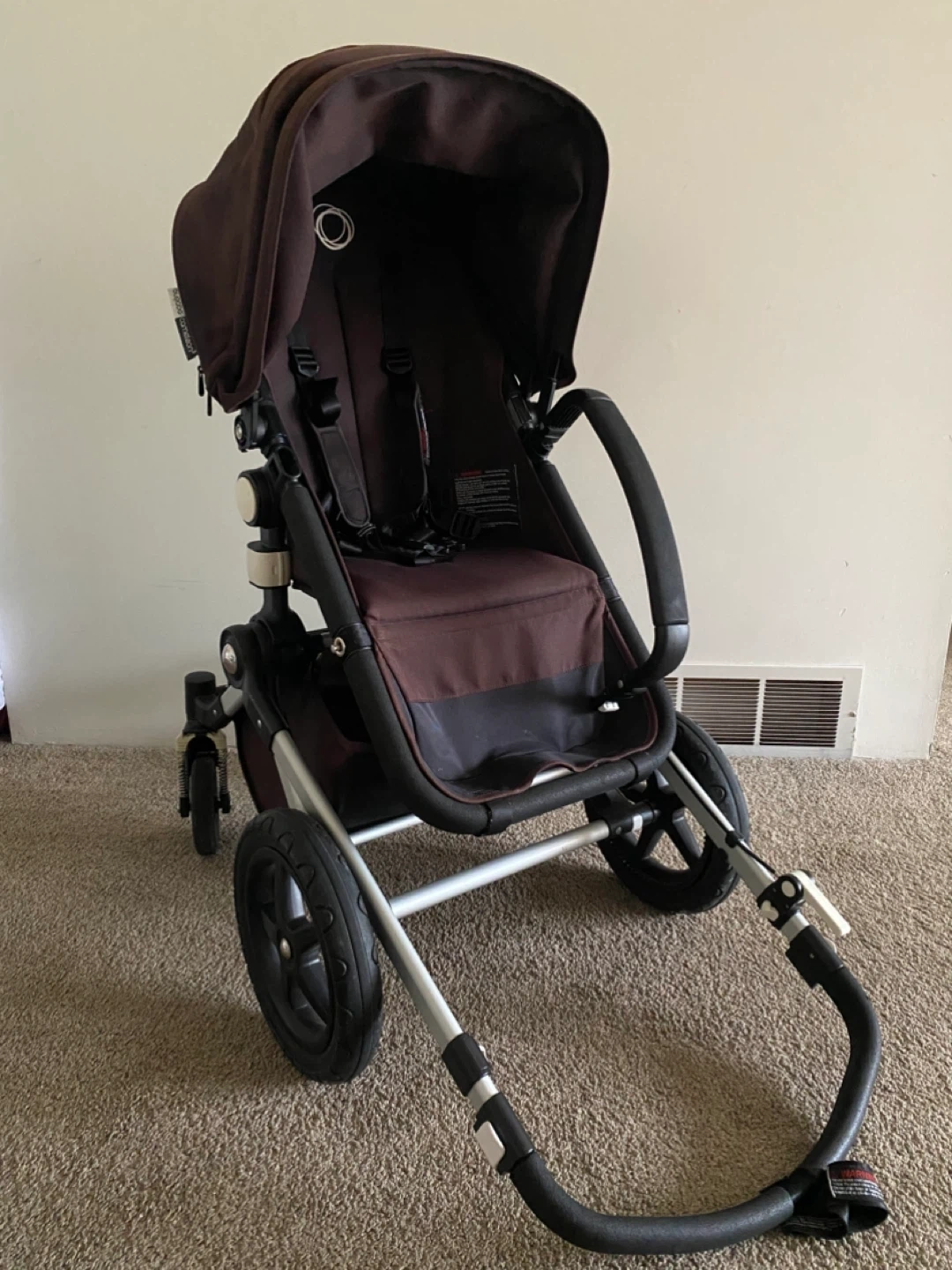 93Selling a Bugaboo Cameleon stroller in a stylish brown and black colour scheme. It's in great shape and ready for its next little rider! This stroller is known for its versatility and smooth ride. Perfect for navigating city streets or park trails