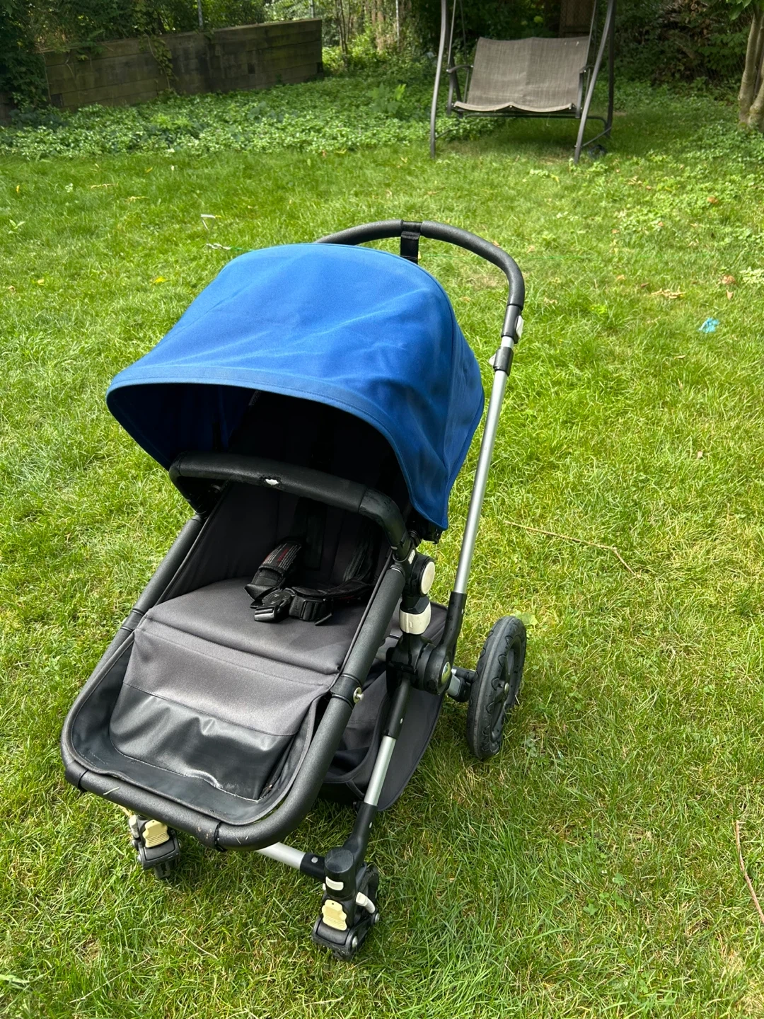 10Selling a Bugaboo stroller in great condition! It features a stylish blue canopy and a comfortable seat. Perfect for strolls around the neighbourhood or trips to the park