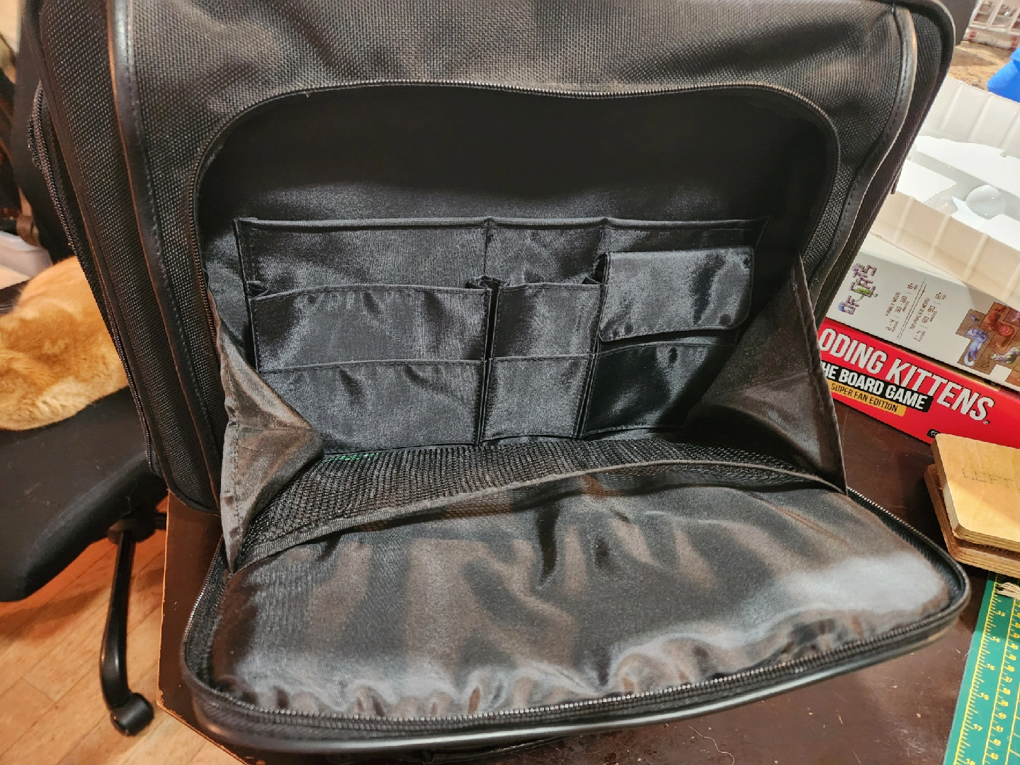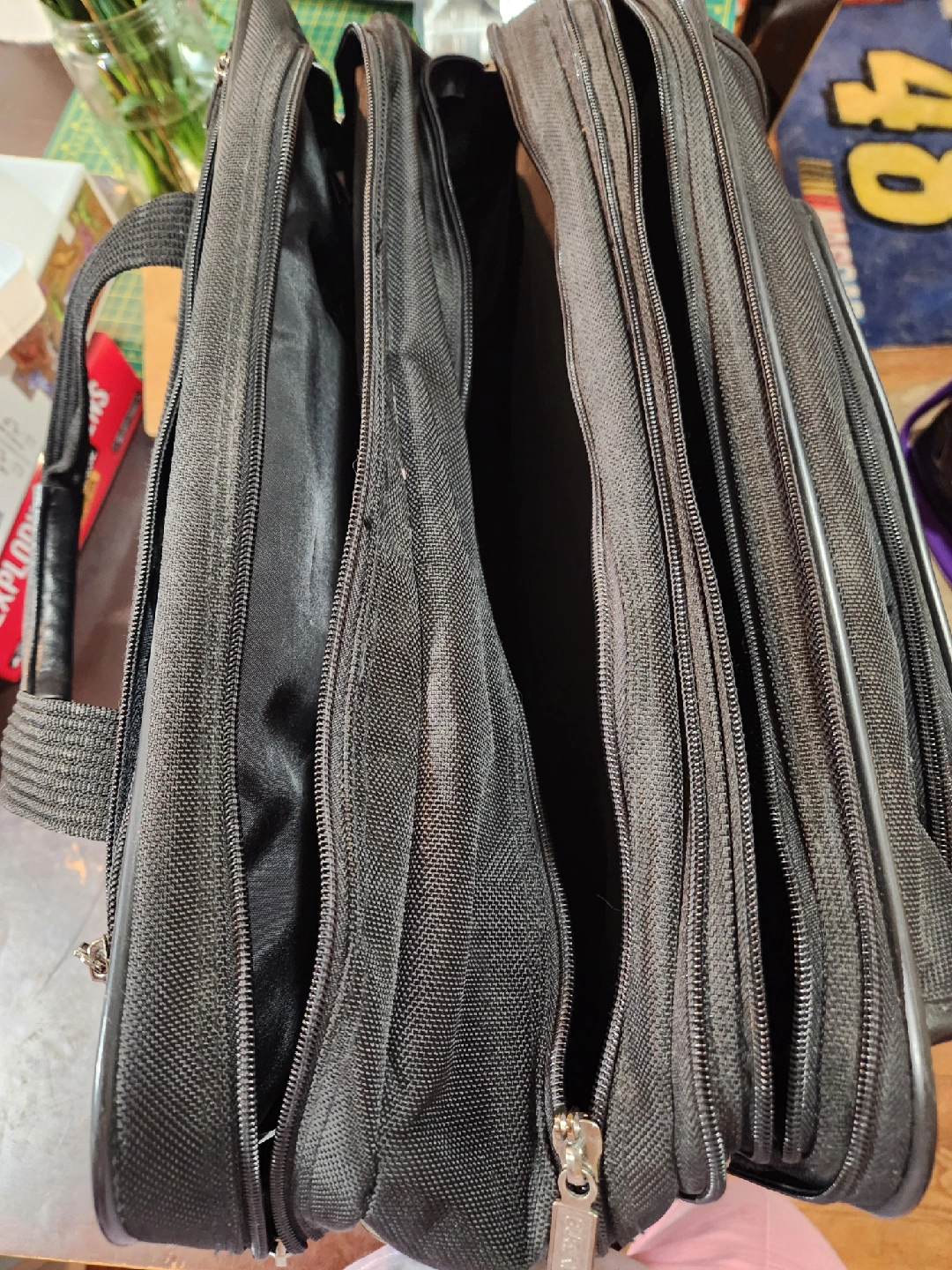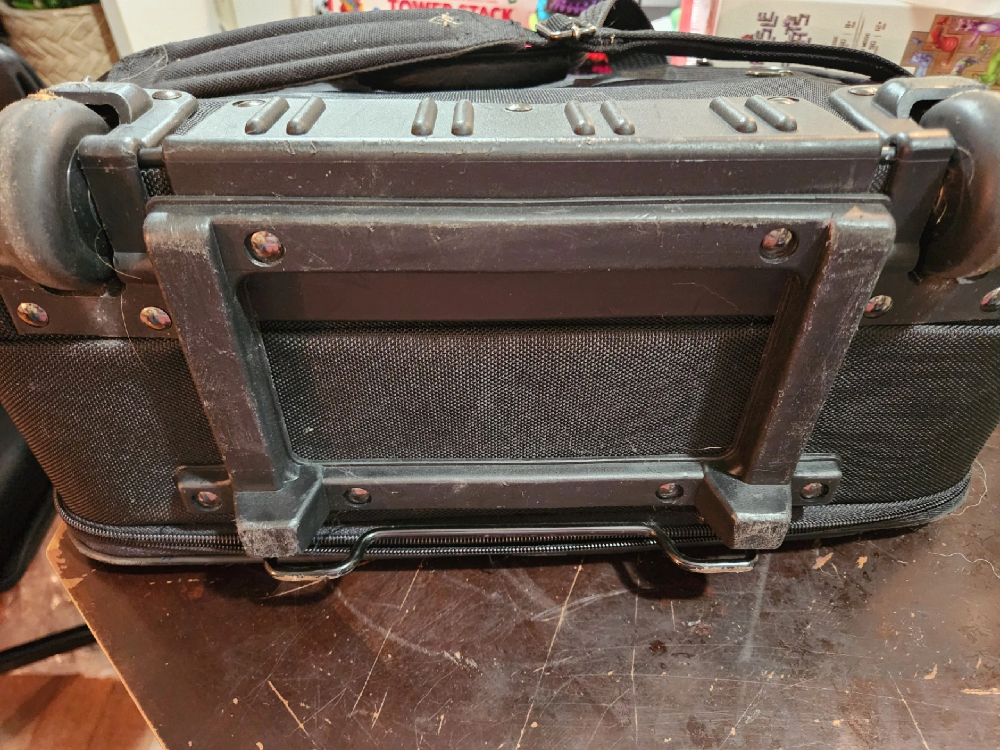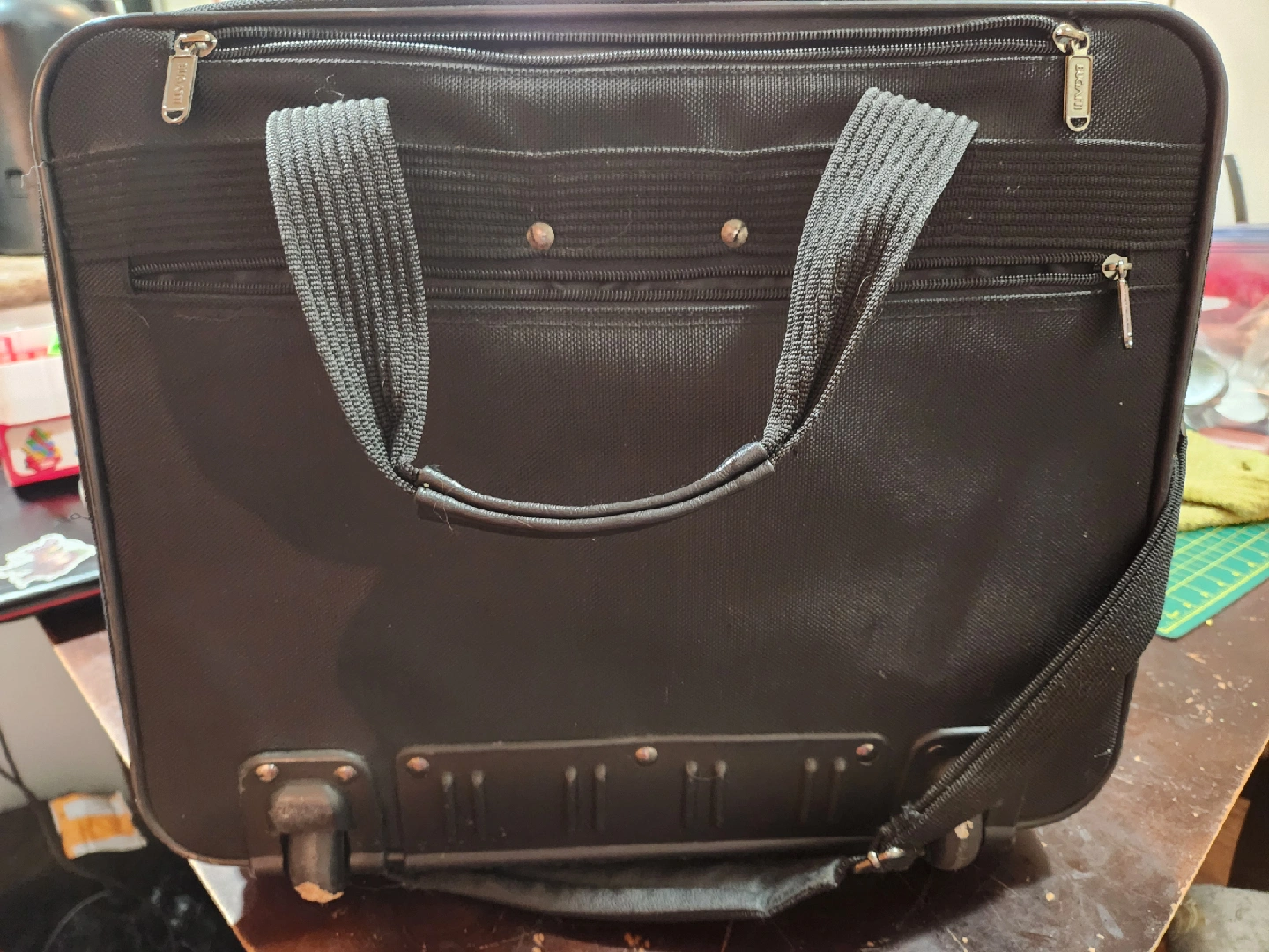 Selling a Bugatti rolling carry-on bag/briefcase in black. Only very minor scuffs. Lots of compartments to keep you organized, extendable gandle and sgoulder strap. Fits in the carry on requirements of all major airlines while having the space.for anything you need. Smoke free and Pet Friendly Home