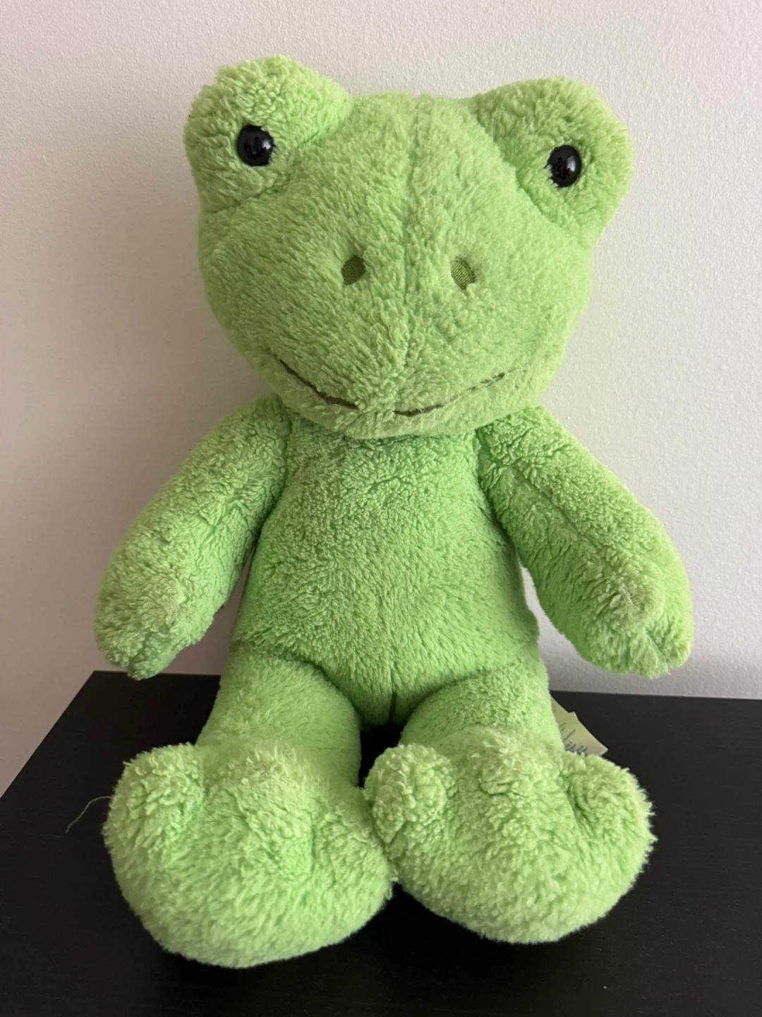 A cute and cuddly Build-A-Bear frog in a vibrant green! This plush toy is in great condition and ready for a new home. Perfect for kids or collectors alike From a smoke-free home.