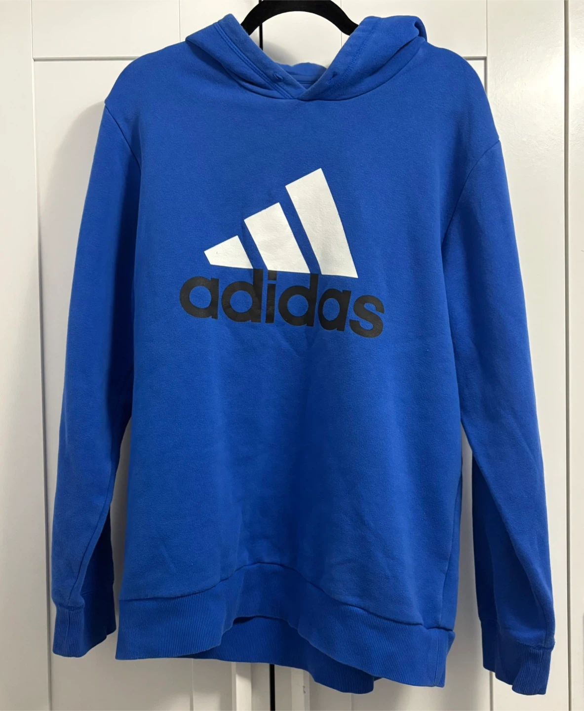 Missing hoodie straps. This is an Adidas Sport Essentials hoodie size large.