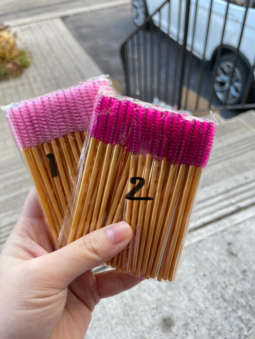 46Set of 100 lash spoolies. Includes solid, glitter, and gold colours. New. Hi everyone, It’s the end of year and I’m clearing my storage. I have quite amount of new lash brushes in beautiful colors. Giving $1/bag, 50 brushes in each bag. Accept small order. For order 100 bags or more, price will be reduced Pick up in Mississauga or Vaughan