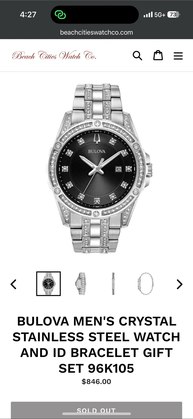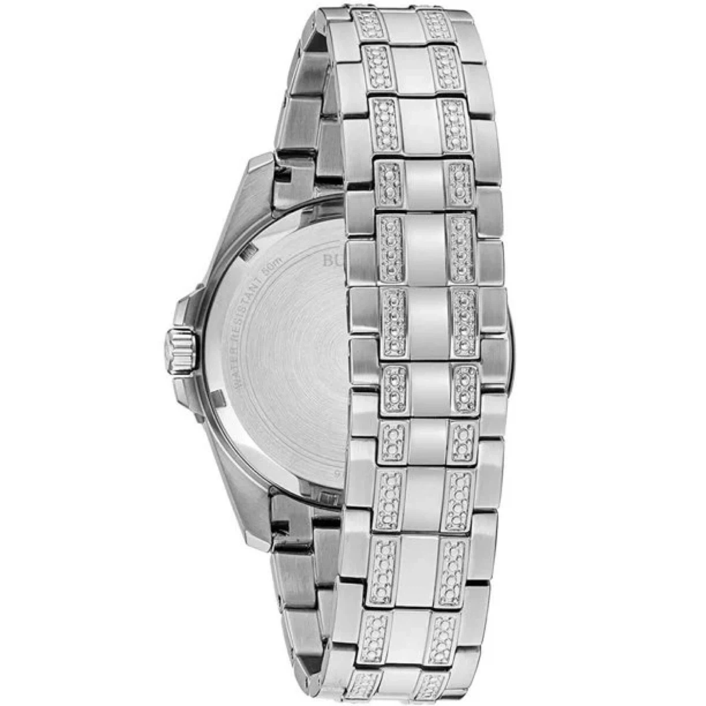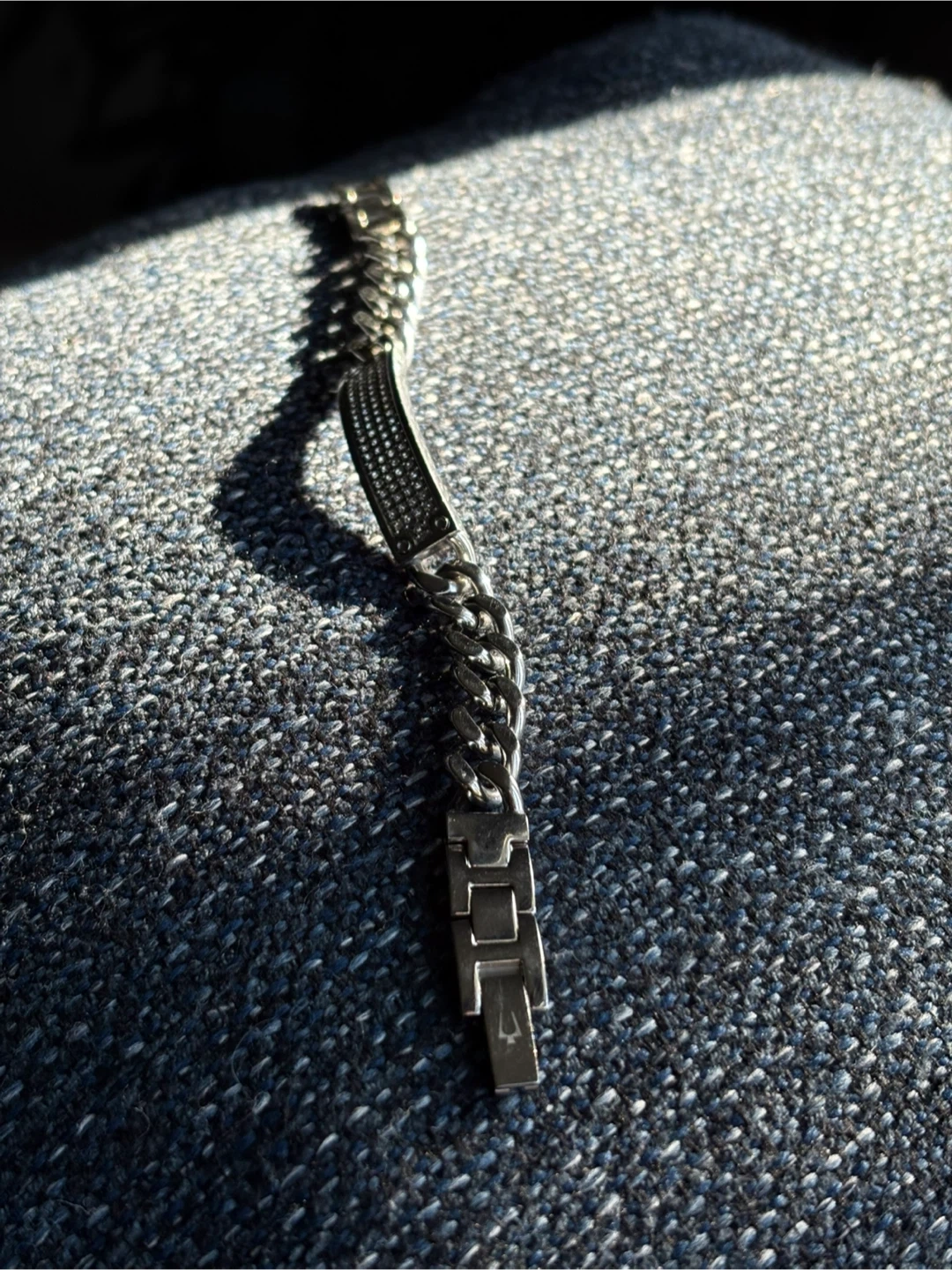 Bulova Men's Crystal Stainless Steel Watch and Matching Bracelet Set. No box. 43 mm stainless steel case with a black dial that showcases silver-tone hands. 11 crystal indices and date display at 3 o'clock. Crystal accented bezel. Complete look with a coordinating crystal adorned stainless steel bracelet. Water resistant up to 30 meters. Comes with extra links to adjust watch to fit. Could benefit from a polish and quartz movement battery, but otherwise good condition. Brand new would cost $850, but I'm selling for $500. Which is $350 off. You can pick this up in the Edmonton area.
