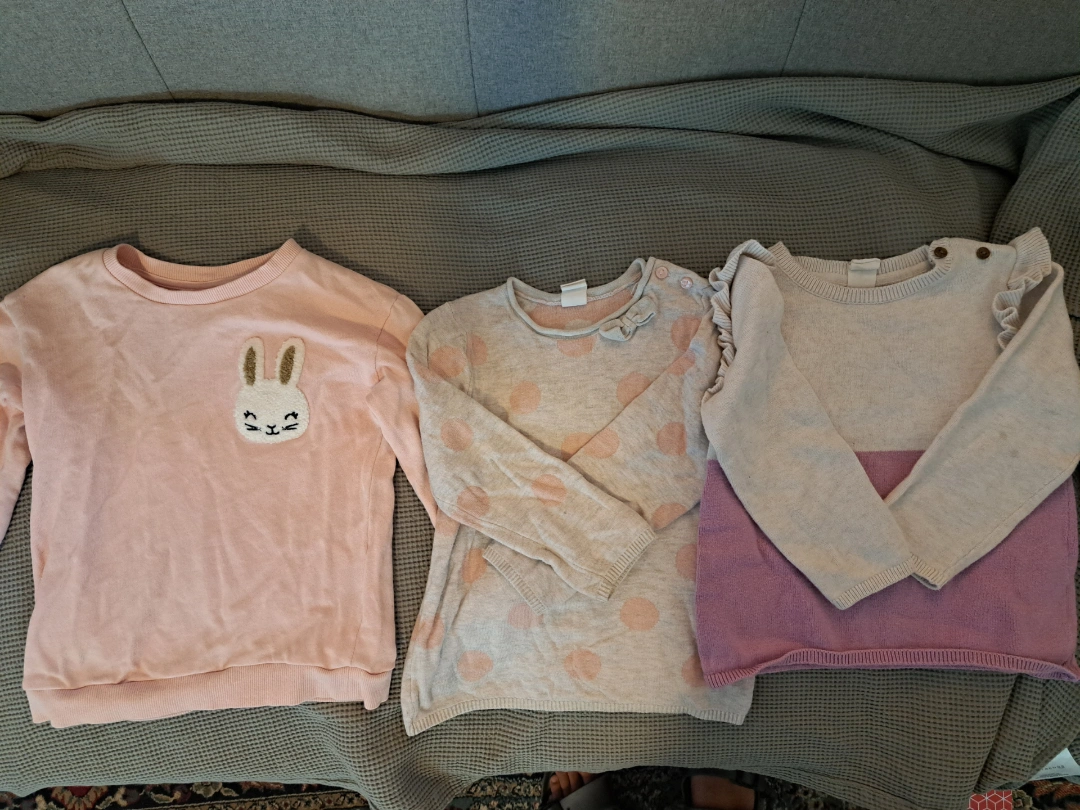 3 H&M sweaters 1 is 2T (but fits more like 3/4T), 1 is 3T, and 1 is 4T (all fit like a 3T or slightly bigger) All are in gently used great condition pet-free, smoke-free, bug-free home Feel free to send reasonable offers!