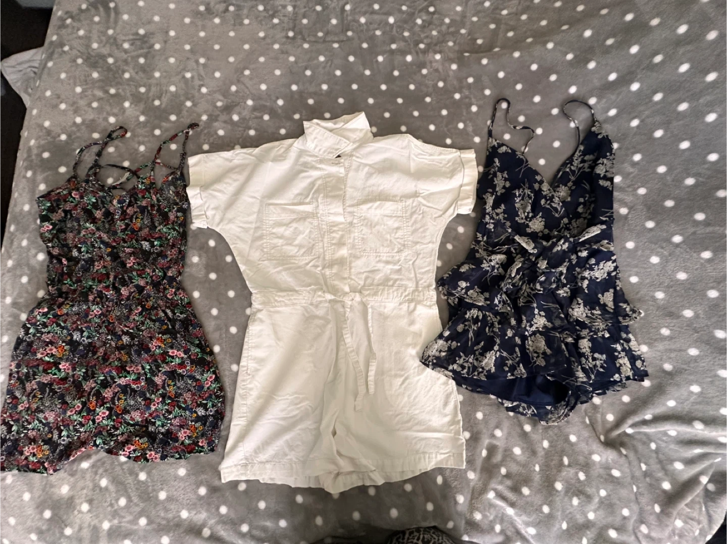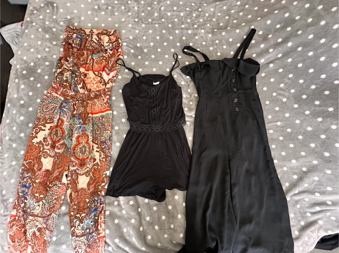 Selling a bundle of ladies' rompers and jumpsuits. There are a variety of styles and colours, perfect for summer or layering. They are in great condition and ready for a new home!