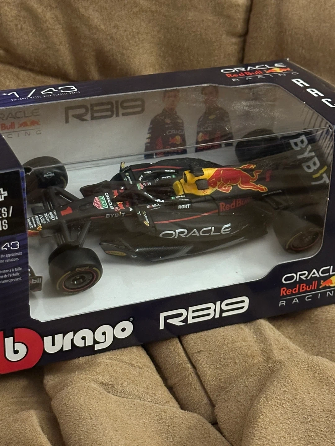 Selling a Burago Red Bull Racing RB19 model car. It's a 1/43 scale model and looks great on display! The car features logos from Oracle, Red Bull, Honda, and Bybit. Perfect for any F1 fan!
