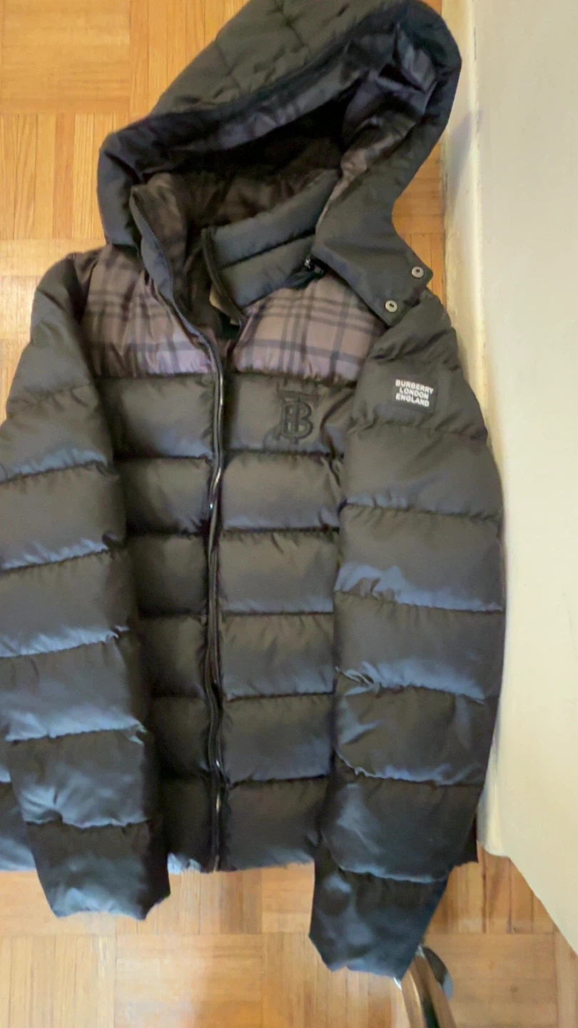 10Selling a Burberry black puffer jacket in size M. The jacket is made of 80% polyester and 20% cotton. It's in great condition and perfect for the colder weather!