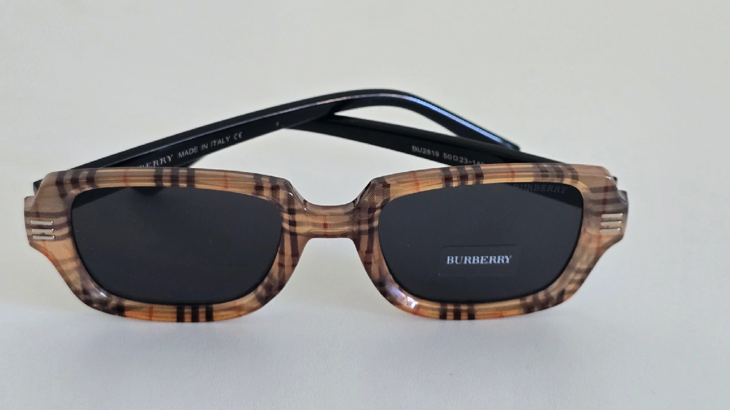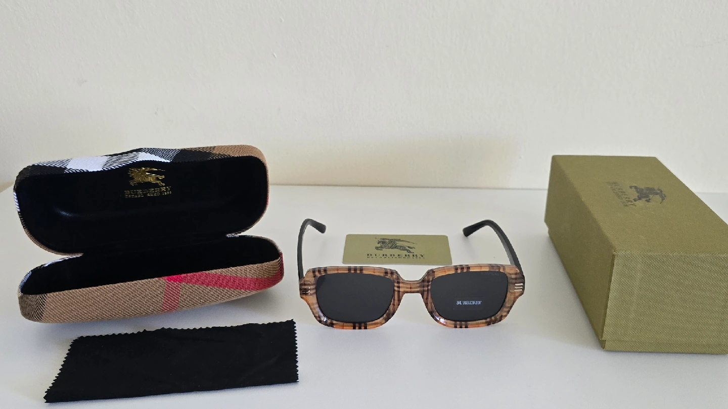 Selling a pair of Burberry BU2819 sunglasses. They feature a stylish plaid pattern on the frames and come with the original case and cleaning cloth. Perfect for adding a touch of luxury to your look!