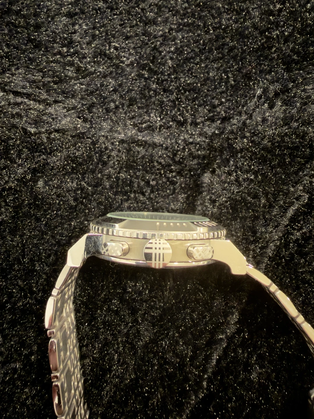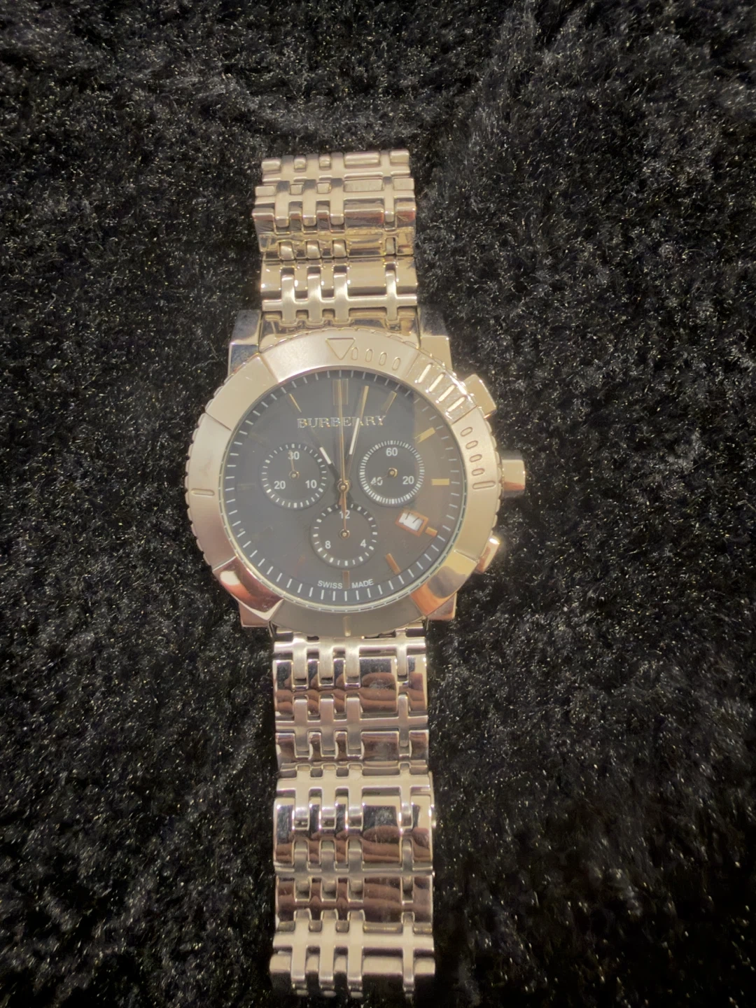 Selling a Burberry men's watch, model BU7302. This Swiss-made watch has a stainless steel band and chronograph dial. It is water resistant to 100m/330 feet. A stylish timepiece for any occasion