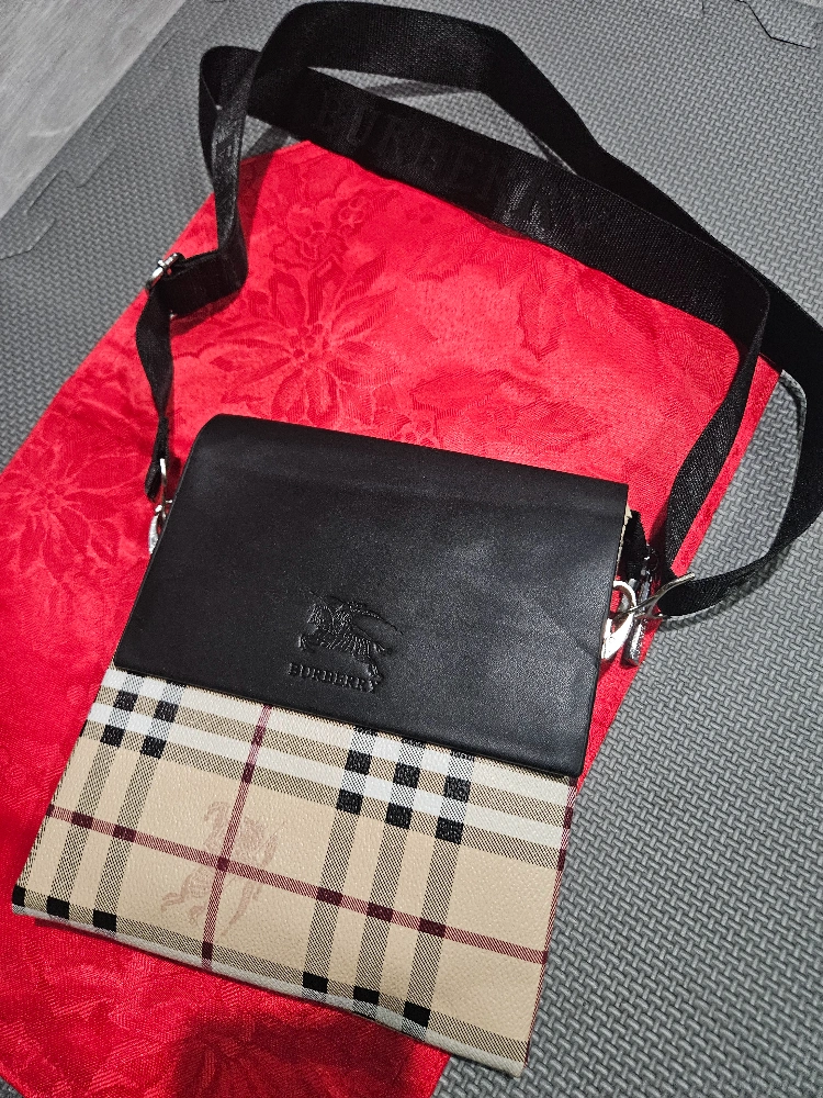 Selling a Burberry crossbody bag in good condition! The bag features a classic plaid pattern with a black leather flap. It's perfect for carrying your essentials while keeping your hands free