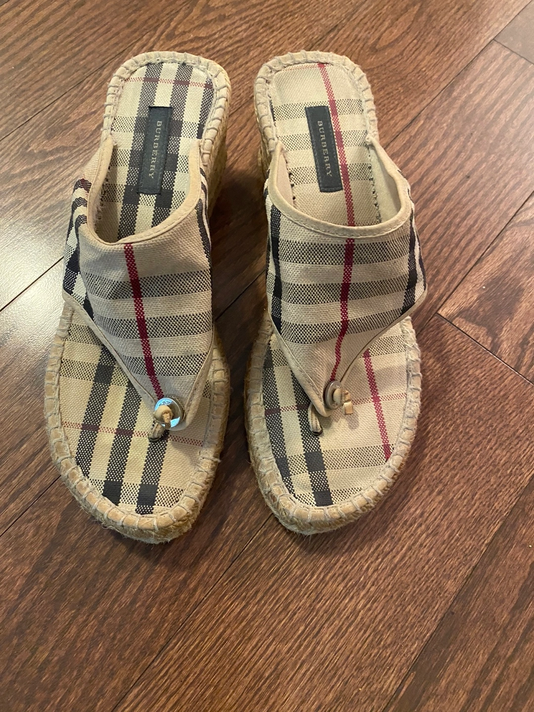 These Burberry espadrille wedge sandals feature the classic Burberry plaid pattern. They're perfect for adding a touch of designer style to your summer wardrobe!