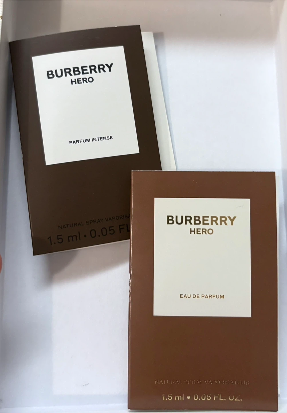 Selling two Burberry Hero fragrance samples! One is the Parfum Intense version, and the other is the Eau de Parfum. Both are 1.5 ml (0.05 fl oz) natural spray vaporisateur samples. Earthy and woody fragrances Total - 3 ml ‼️Price is firm and final ‼️ No low ballers please Cash only Pick up only Take both for 8$