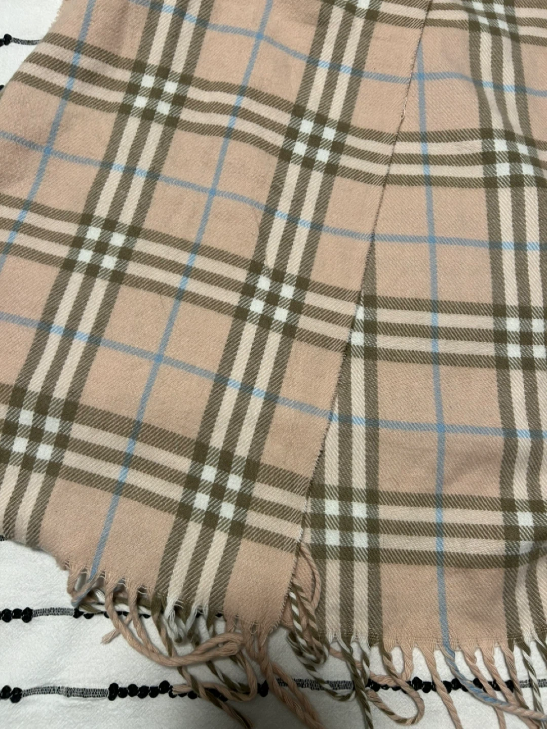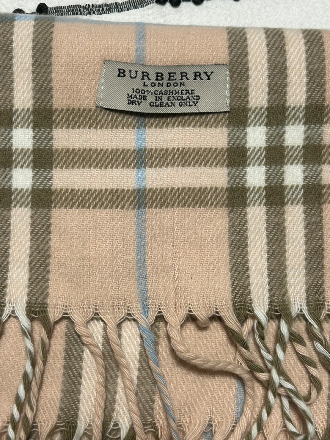 23Selling a beautiful Burberry London scarf made of 100% cashmere. It's a soft, warm, and stylish accessory for any wardrobe. The classic Burberry check pattern is timeless and elegant. Made in England, this scarf is dry clean only. 173 cm long x 32 cm wide