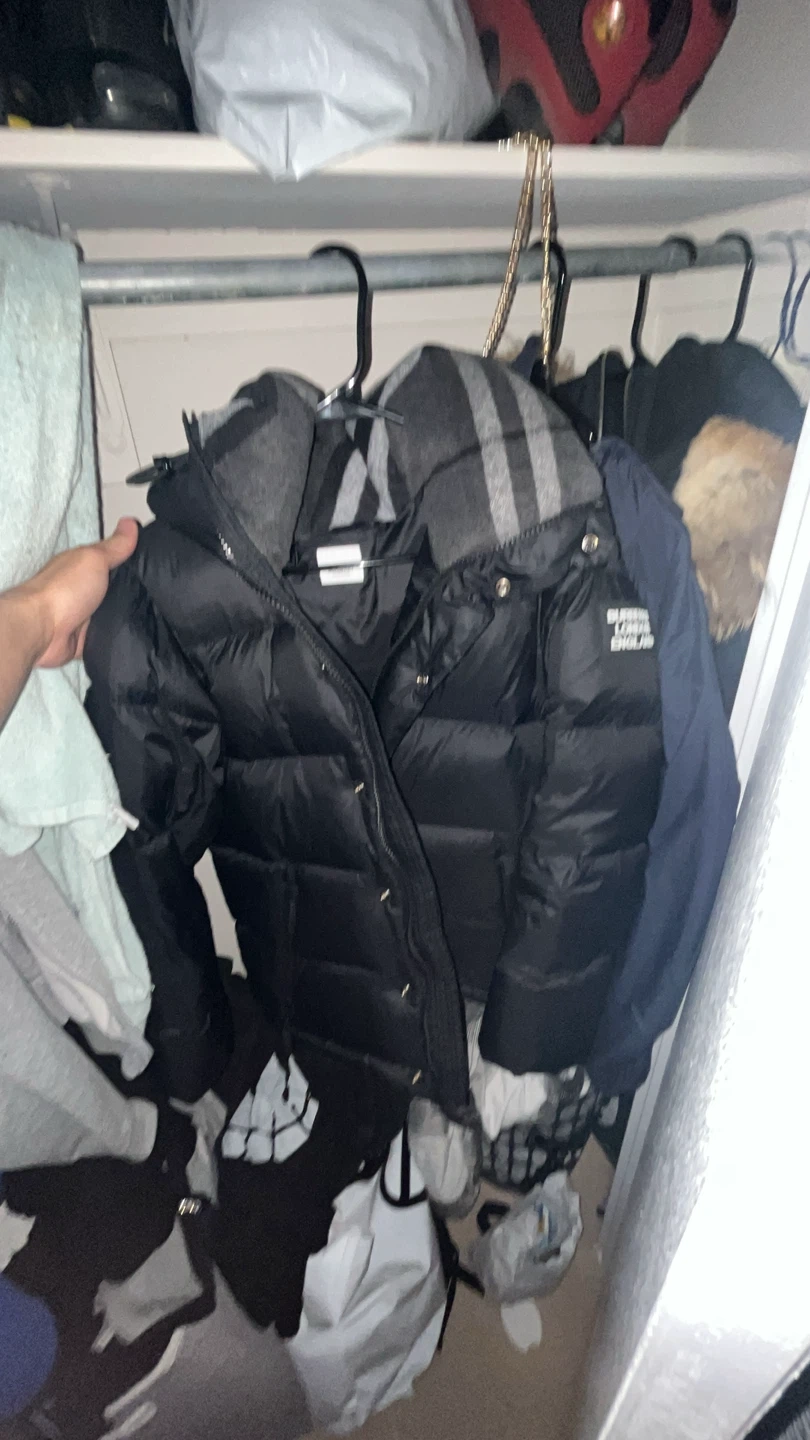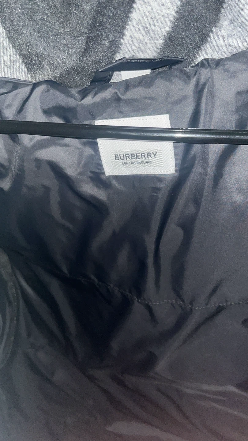 5Selling a Burberry London England puffer jacket. It's a stylish and warm jacket for the colder months. The jacket is black and has a grey and white patterned hood. It's in great condition and ready for a new owner I’m also taking trades