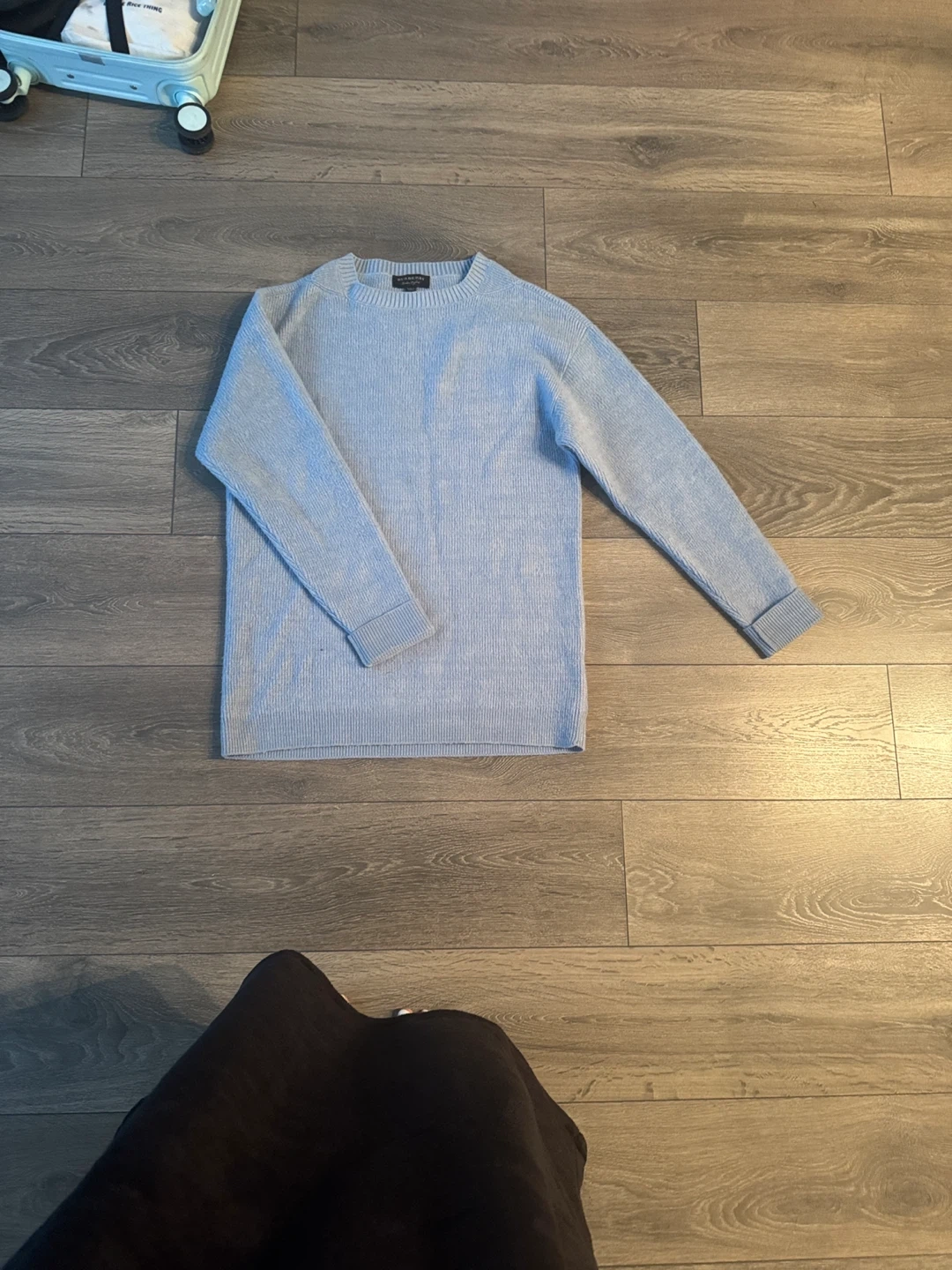 103Selling a lovely Burberry sweater in size medium! It's a beautiful light blue colour and made in Italy. The material is 51% wool and 49% cashmere, so it's super soft and warm!