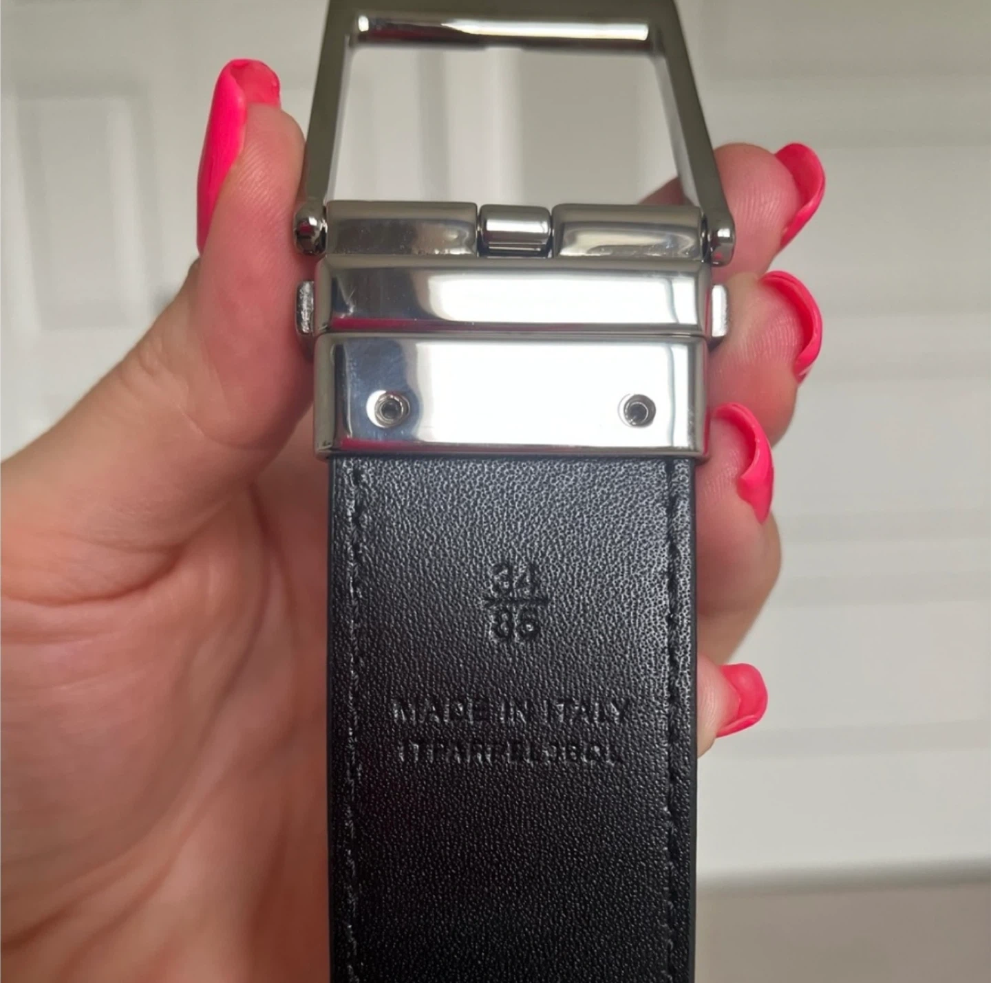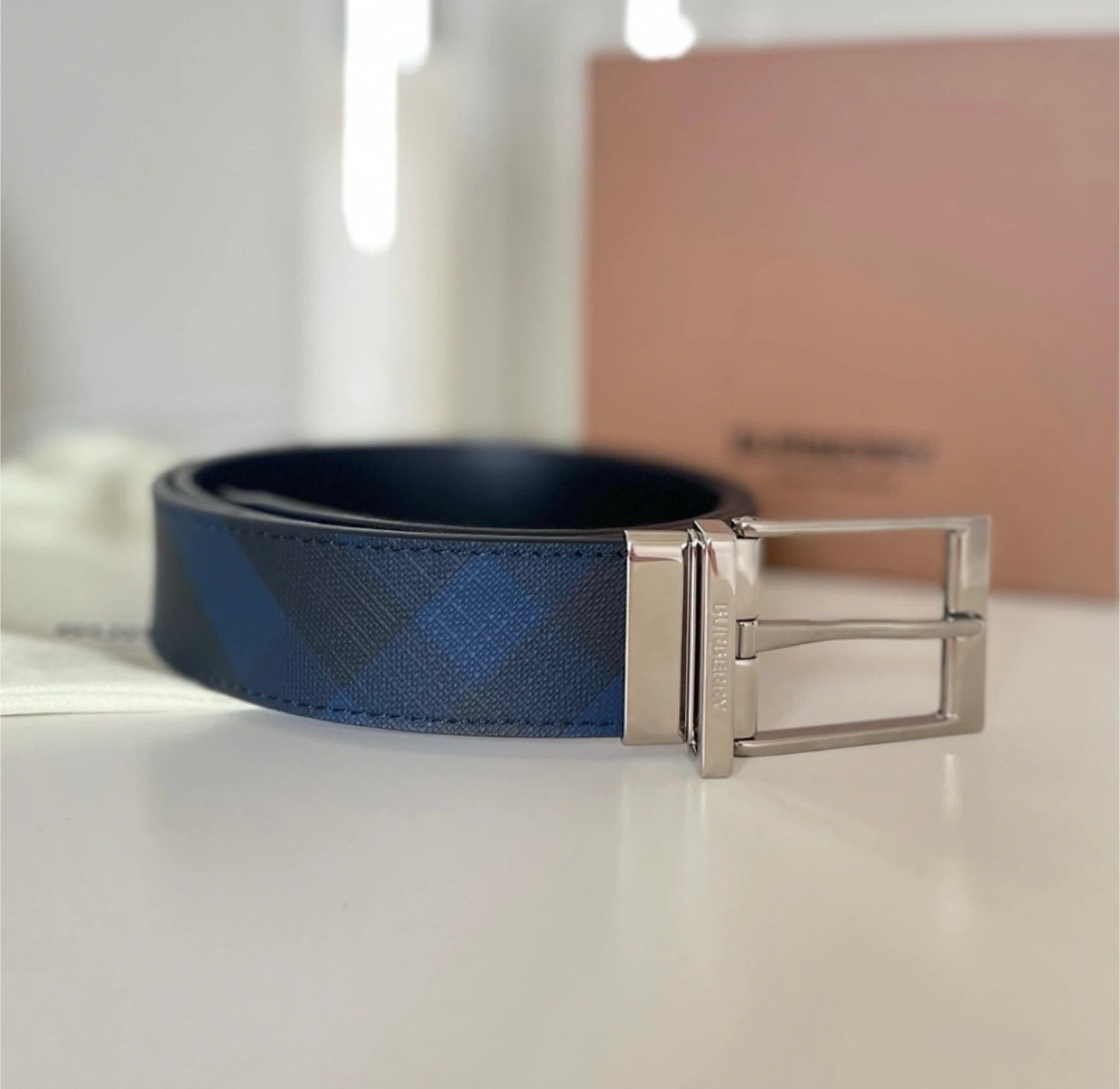 250Never worn - too small MENS Reversible Black & Navy Check Belt Can be worn either on blue plaid check side or solid black leather side Burberry size 85 / 34 Comes with dust bag and box
