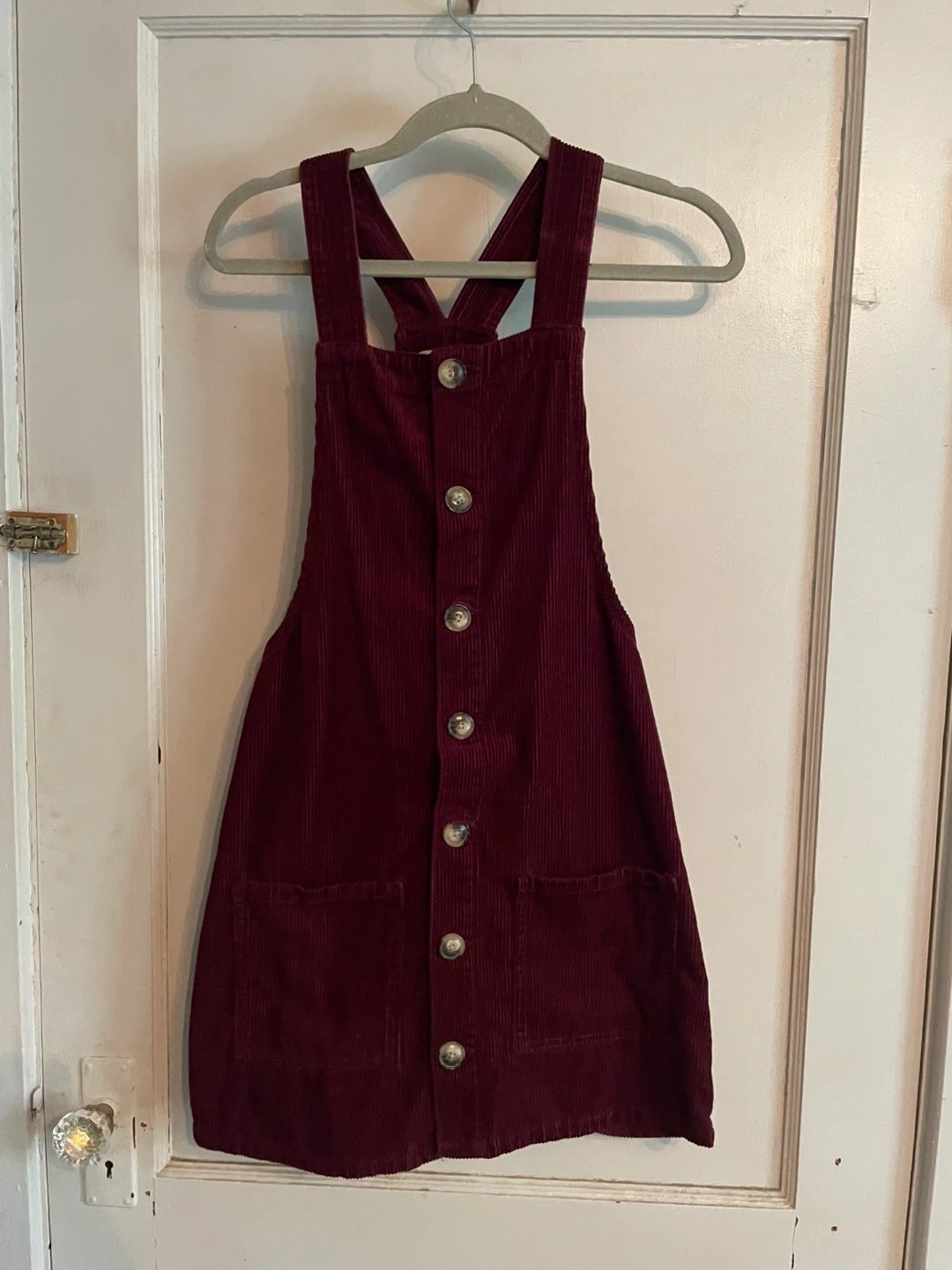 10A lovely burgundy corduroy dress! Perfect for layering or wearing on its own. It's in great condition and ready for a new home (from the UK)