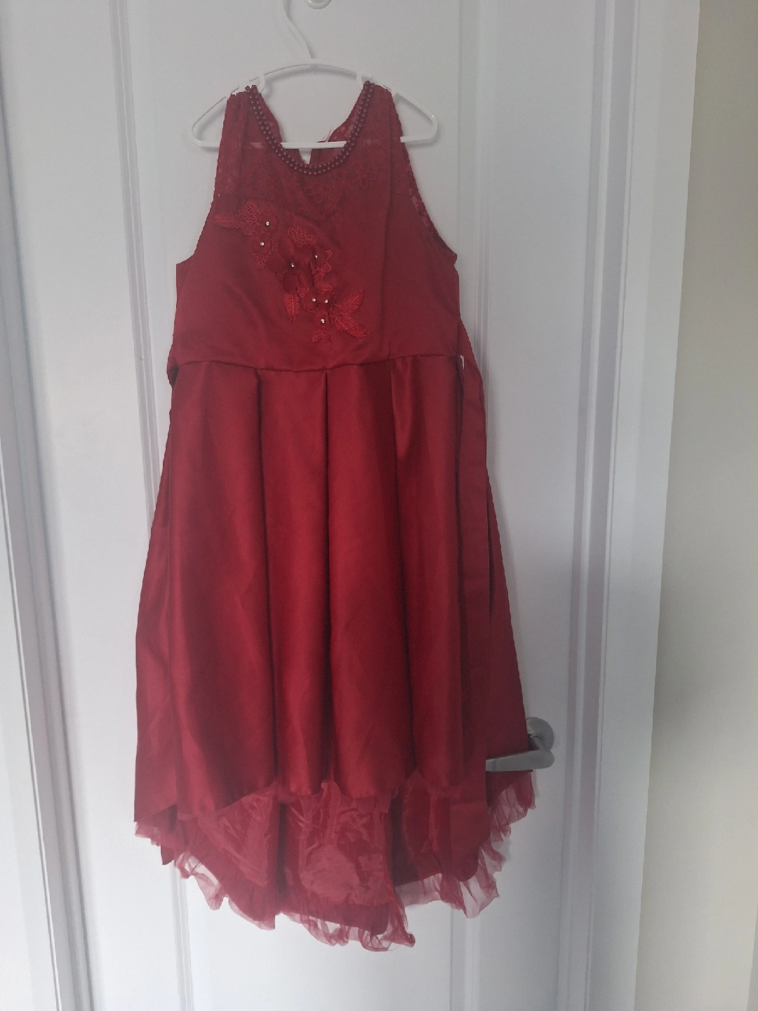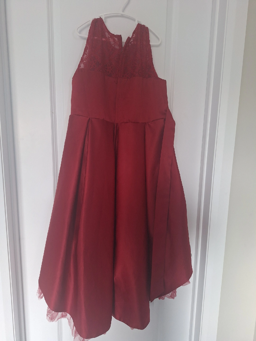 ❤️🌹A lovely burgundy dress featuring delicate lace detailing. Perfect for a special occasion or dressing up! It has a beautiful flower design on the front. The dress is in great condition and ready for a new home. payment cash only.🌹❤️