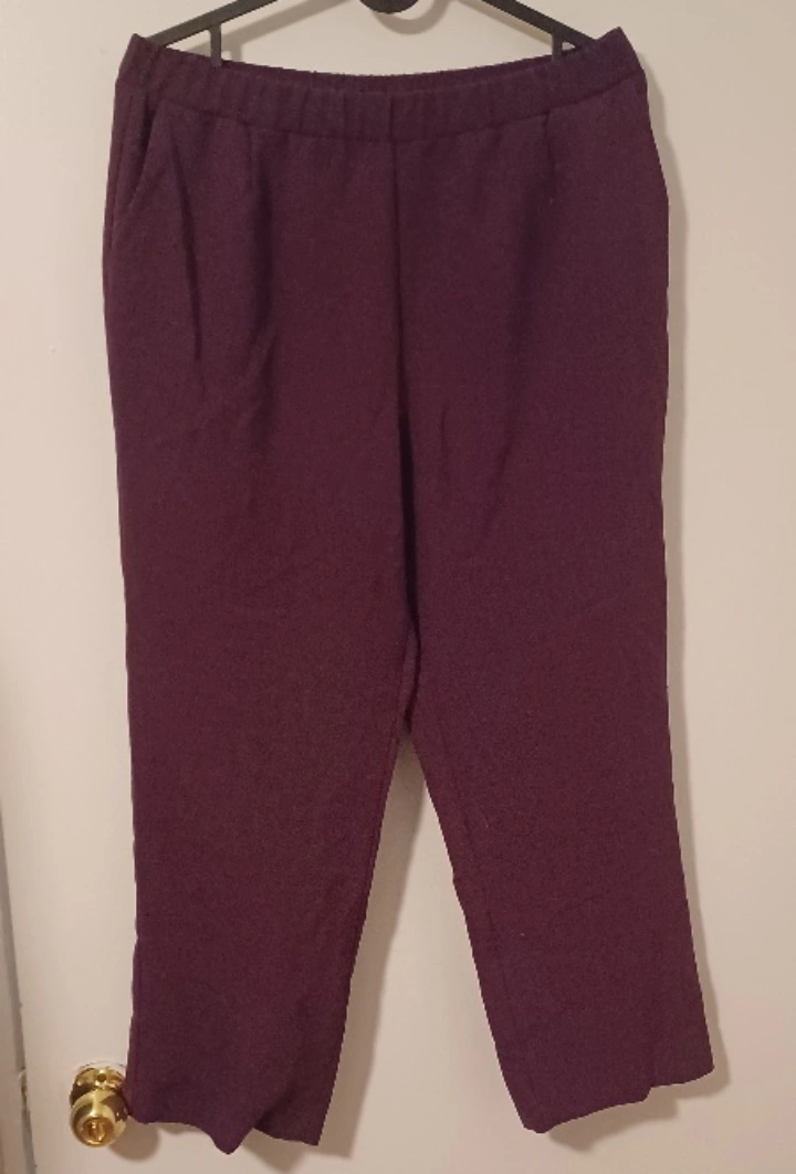 Selling a pair of purple pants with an elastic waistband. They're in great shape and super comfy!