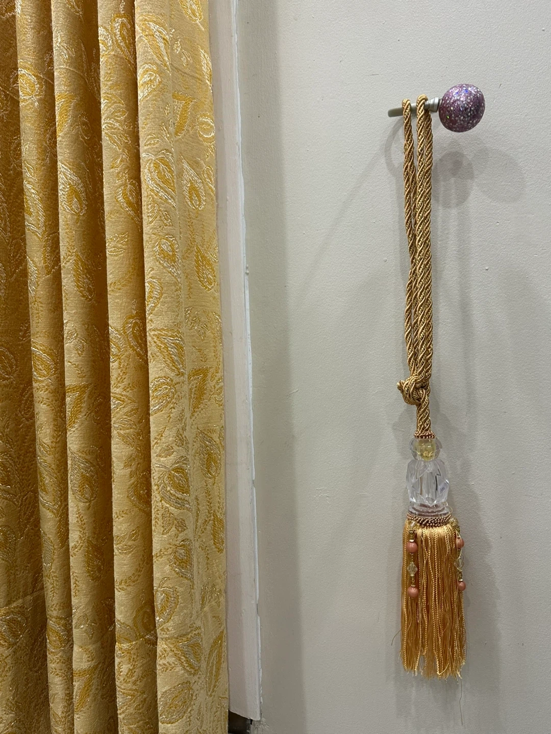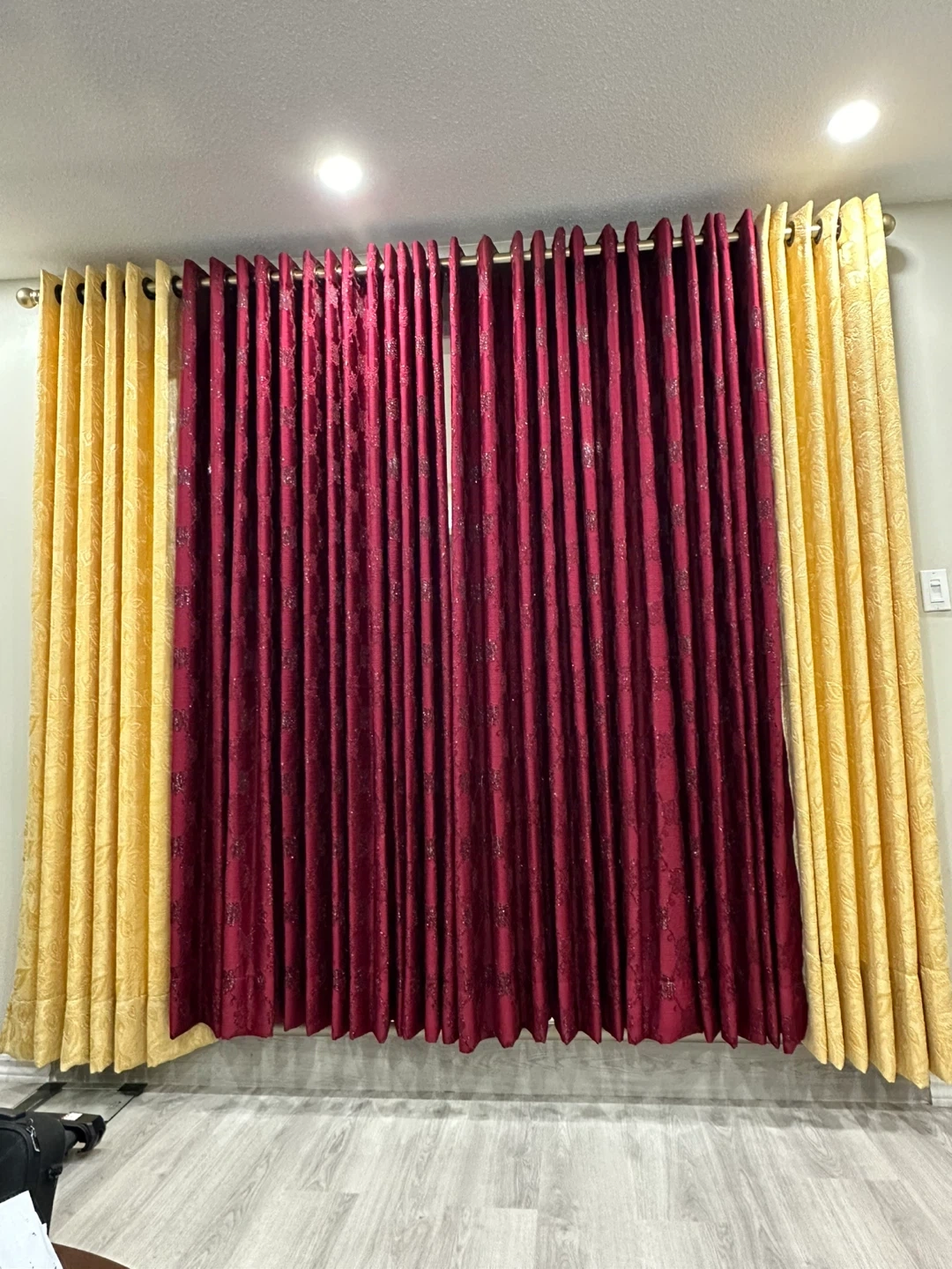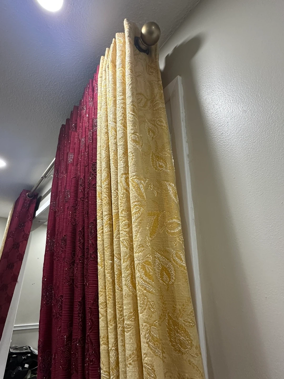16Beautiful set of decorative curtains in burgundy and gold. They add a touch of elegance to any room. Comes with tie backs!