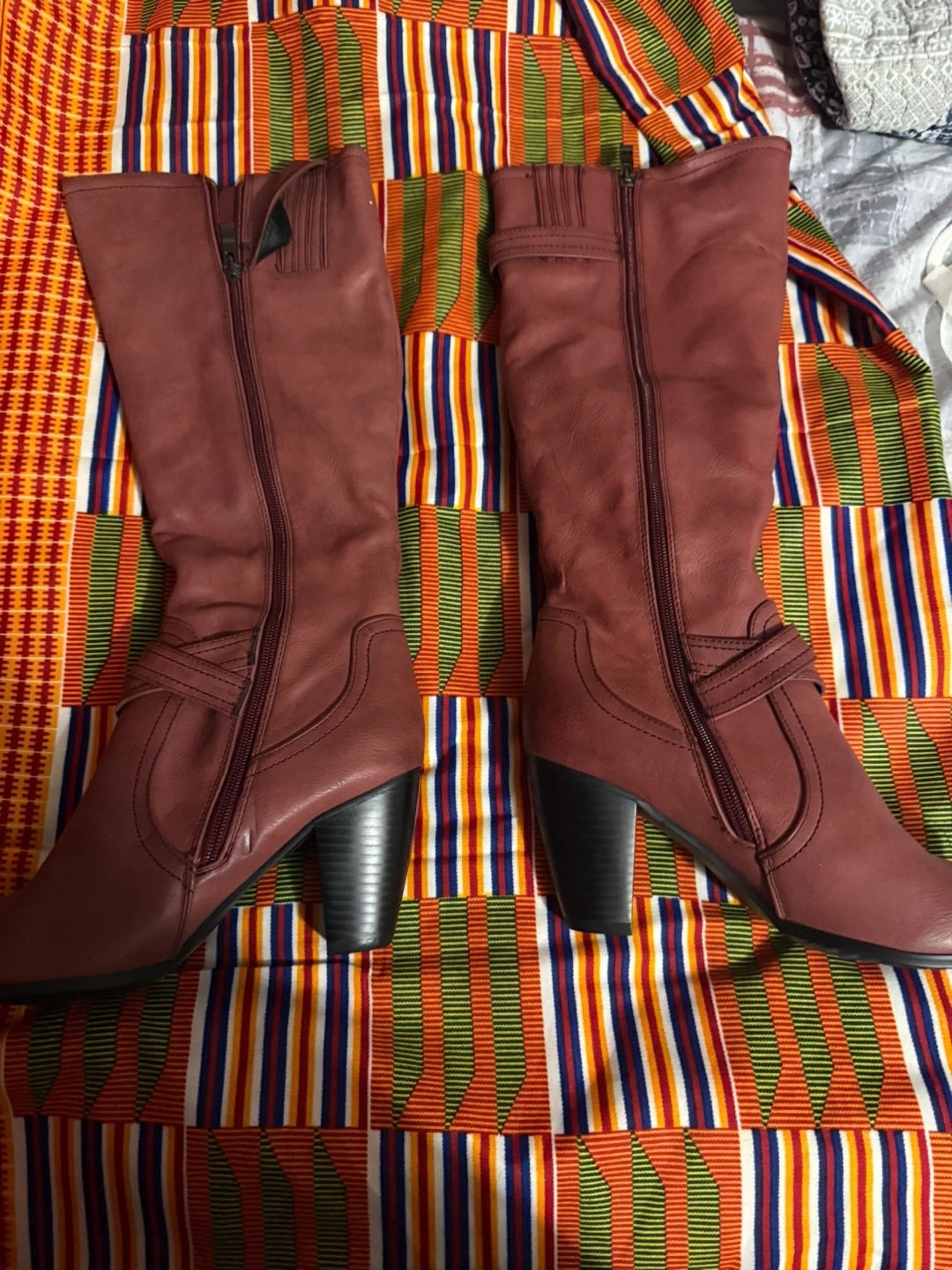 10These burgundy knee-high boots are looking for a new home! They feature a stylish buckle detail and a comfortable heel. Perfect for adding a touch of elegance to any outfit