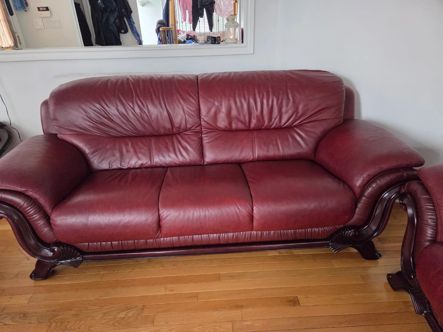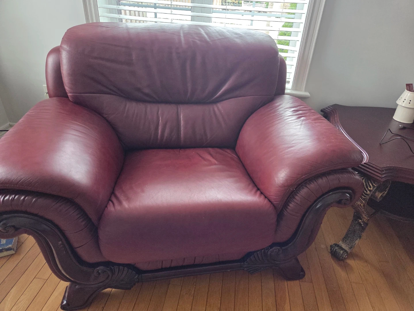 Show allBurgundy Leather Loveseat and Armchair Set