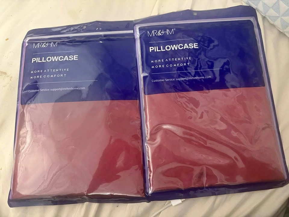 83Satin burgundy pillowcases. Unopened and in original packaging. Brand is Mr&HM 2x King (20”x40”) - $15 2x Queen (20”x30”) - $10