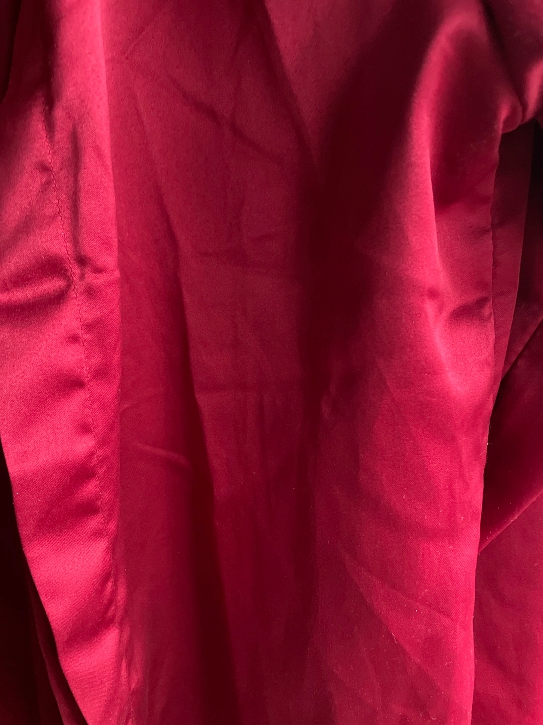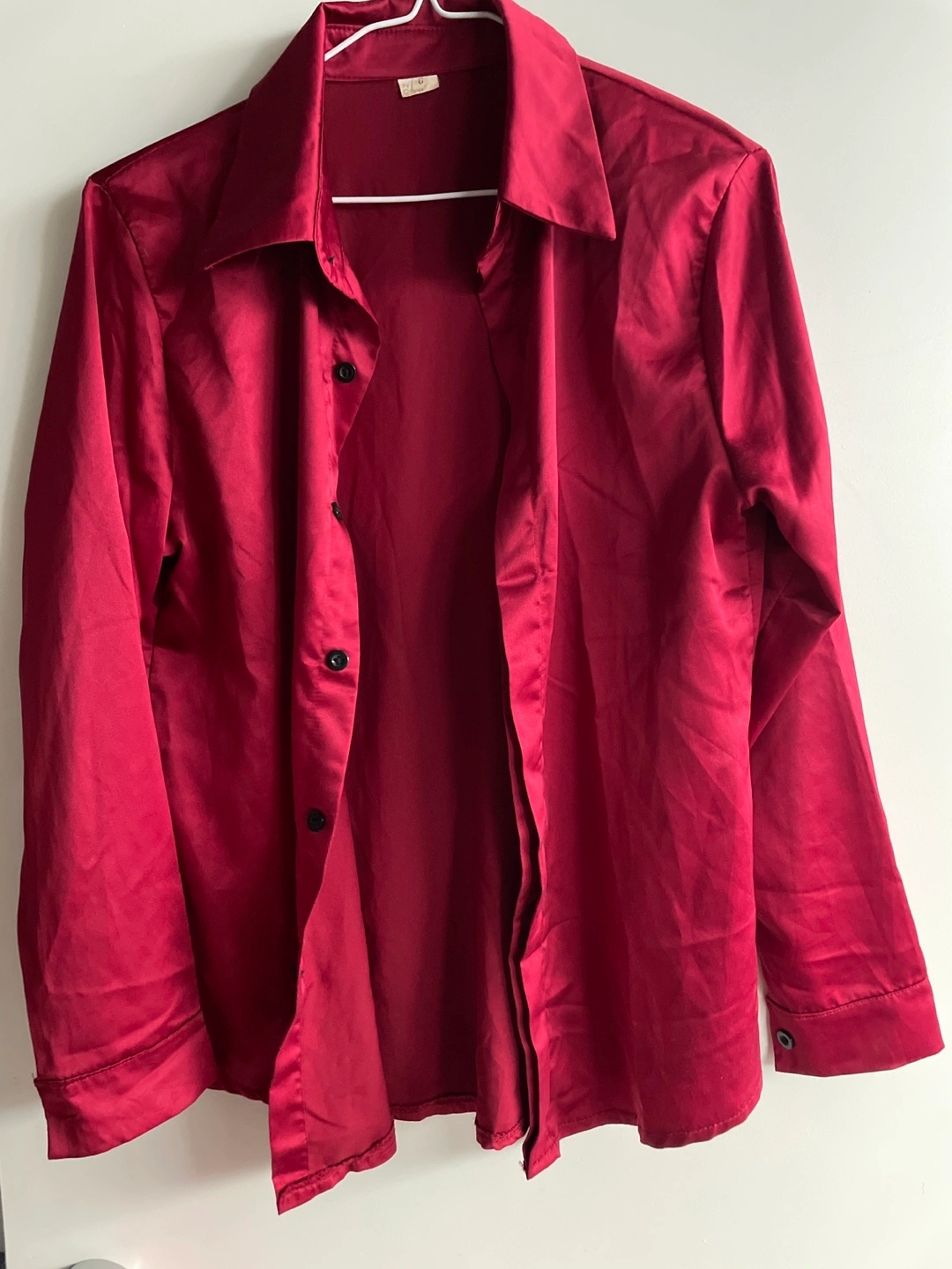 607Long-sleeved burgundy satin shirt. Button-down closure. Classic collar. Great for a night out or special occasion.