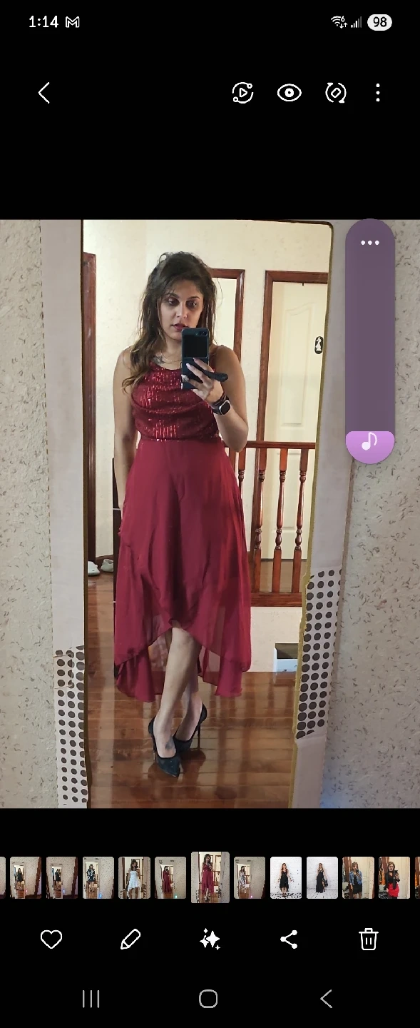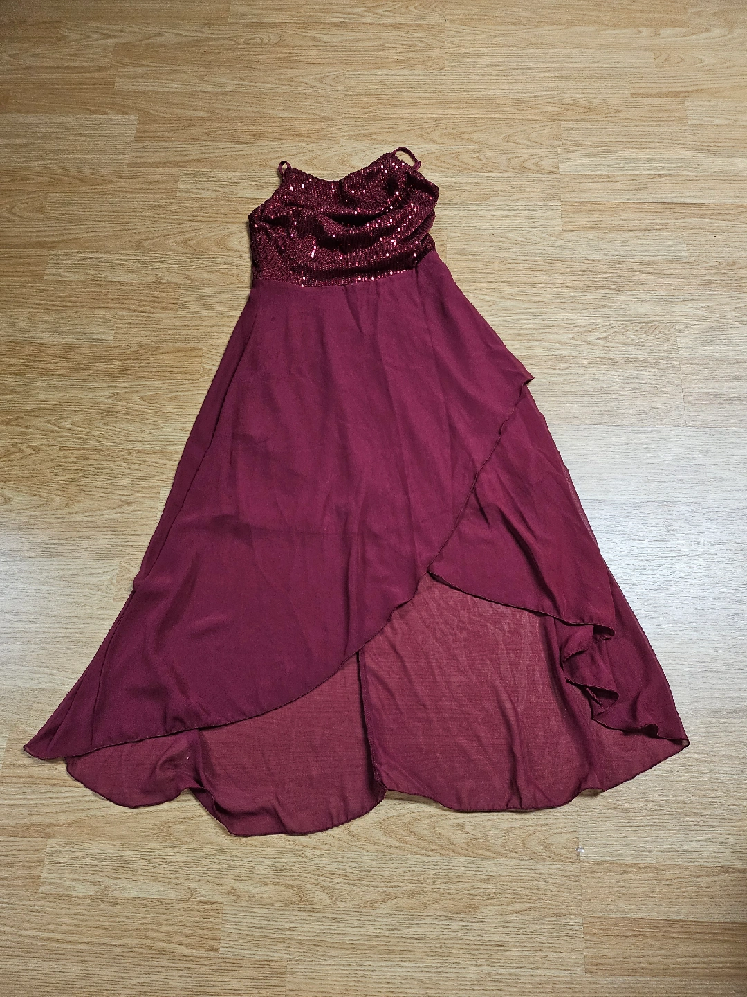 113Selling a beautiful burgundy dress, perfect for parties or special occasions! The top features lovely sequins, and the skirt has a stylish layered design. It's in great condition and ready for a new home