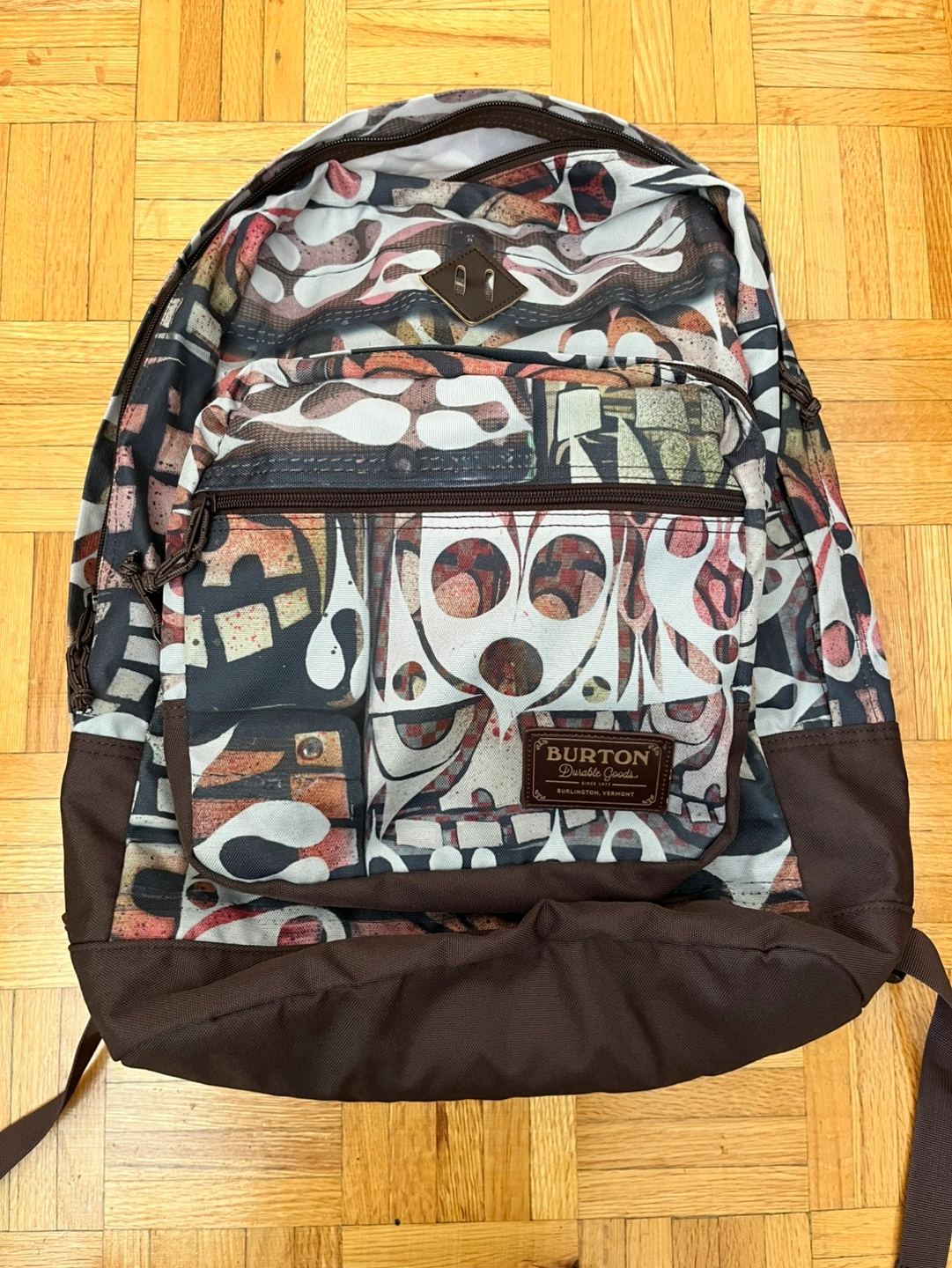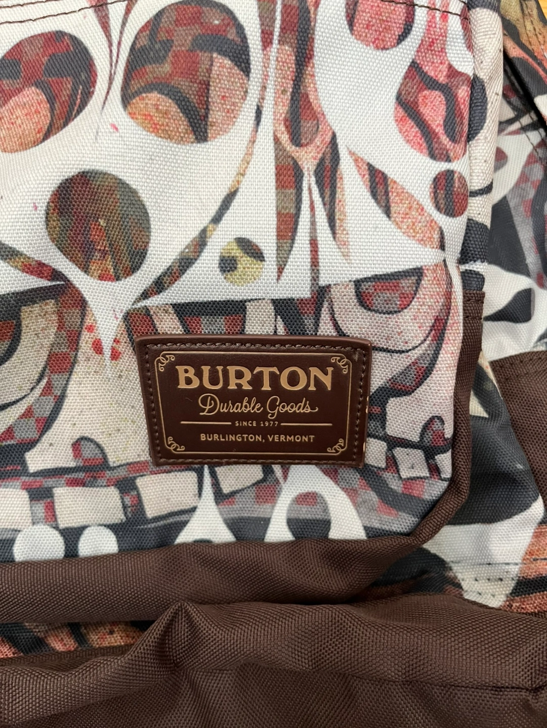 320This is a Burton backpack in a multi-colored print. The bag has a zippered main compartment, a smaller zippered front pocket, and a mesh pocket on the inside. The backpack has never been used, it is new. Price is NOT negotiable, please do NOT message being a cheapskate offering $20 and shit. You will be blocked. Serious inquiry only π