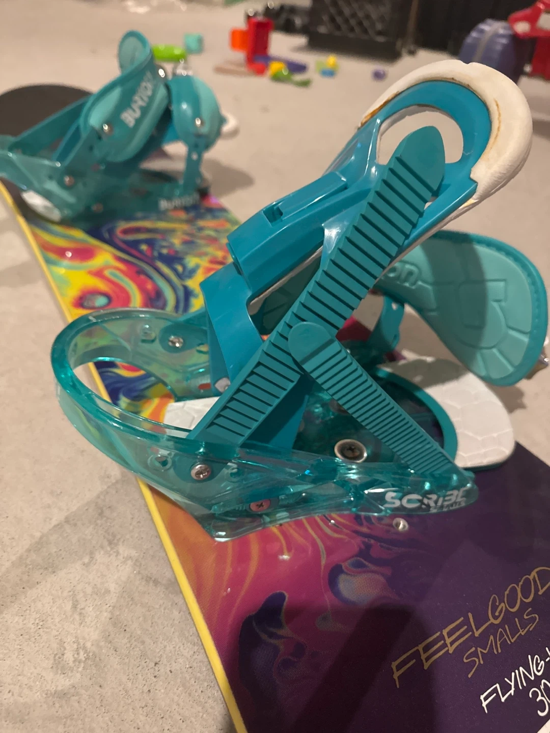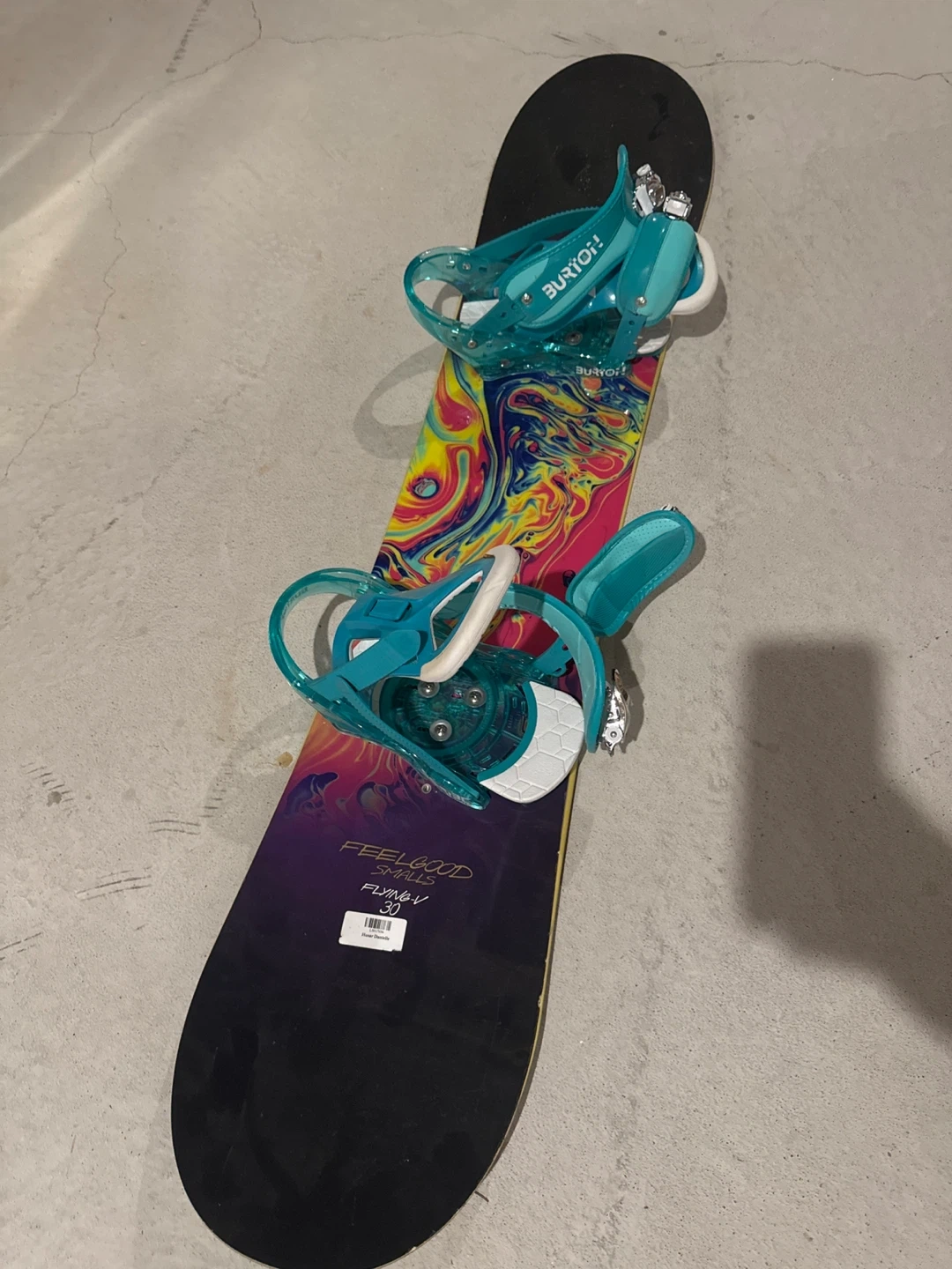 Selling a Burton Feelgood Smalls Flying-V 30 snowboard with Scribe bindings.