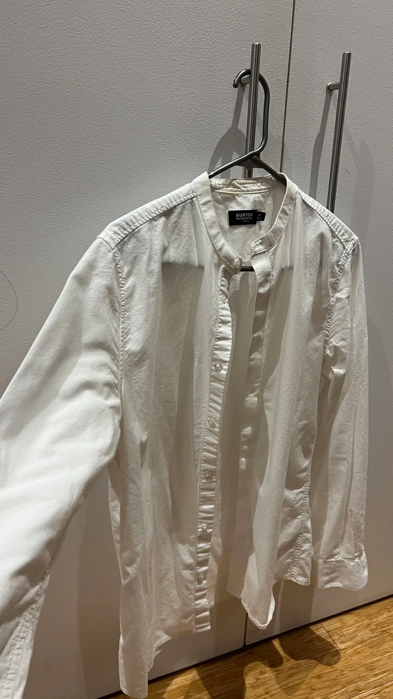 Burton London - White Mandarin Collar Button Down Shirt