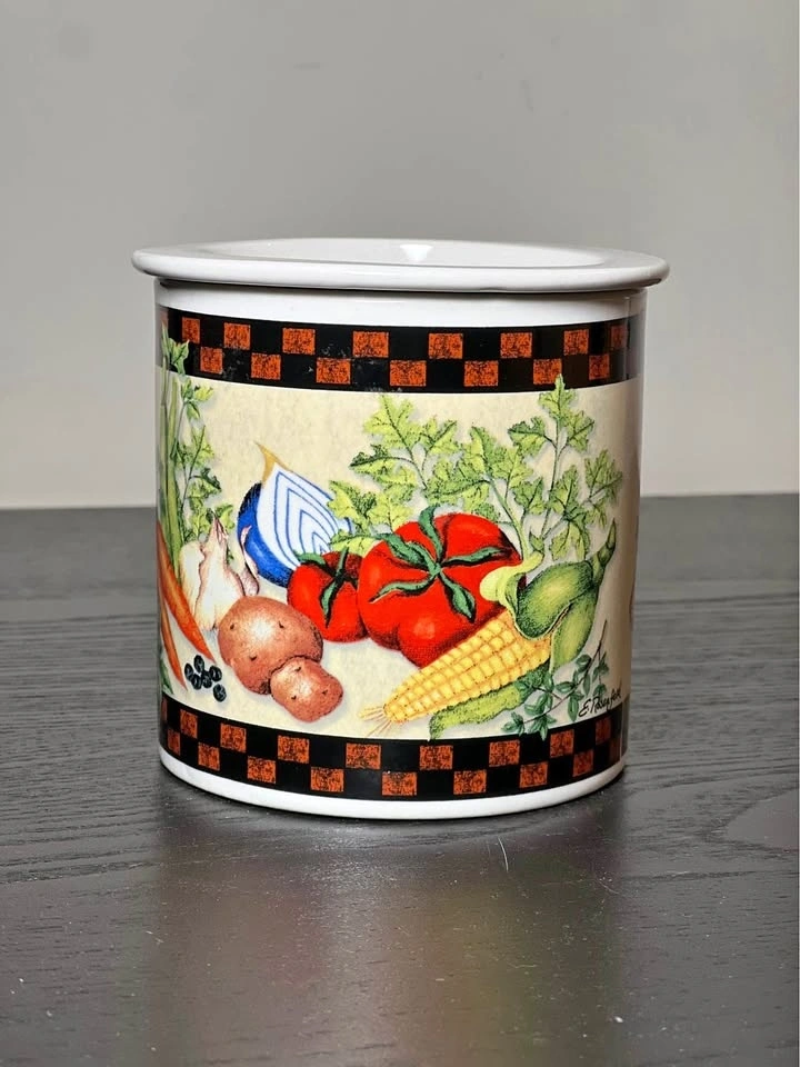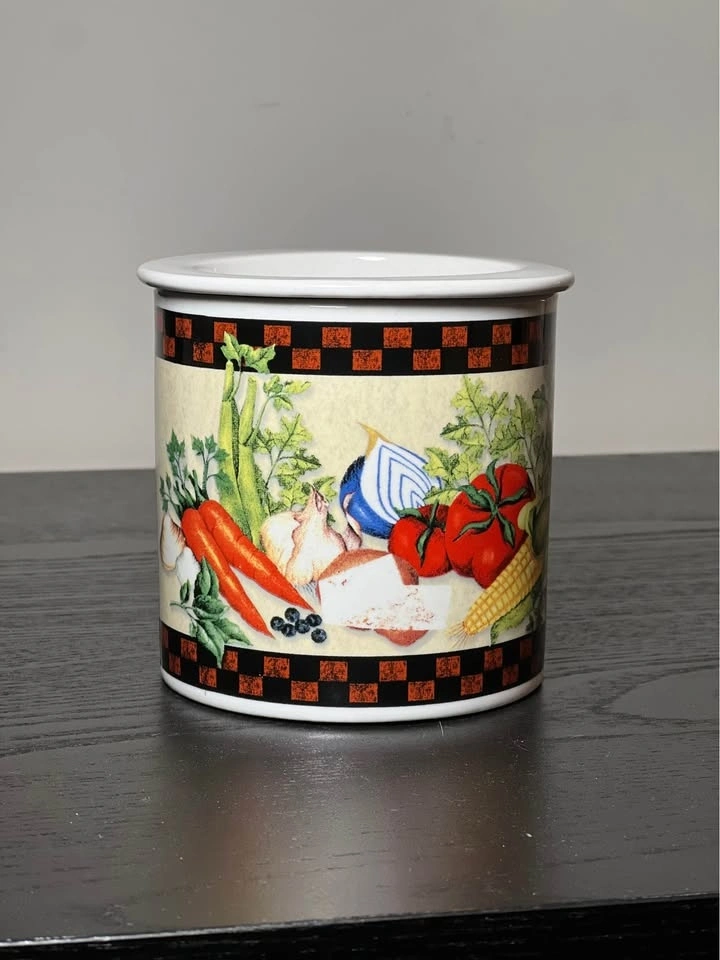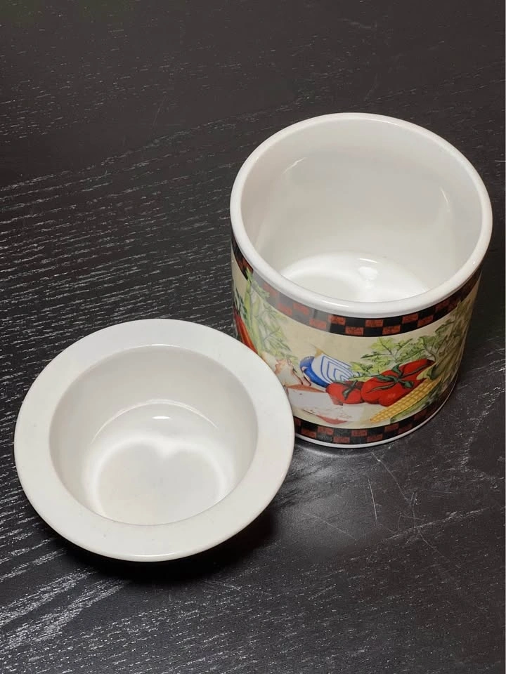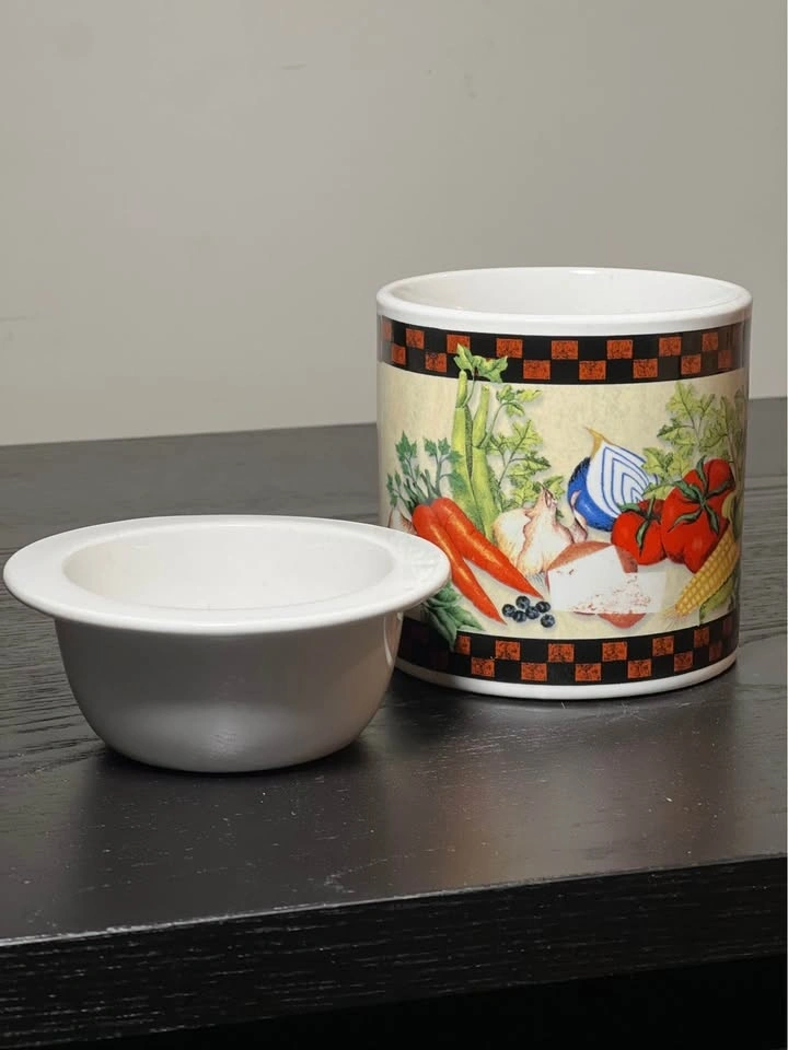 This beautiful porcelain dip chiller from Youngs Incorporated features an all-over vegetable harvest pattern in multicolor. The 2-piece set includes a ceramic bowl with a diameter of 4 inches and a height of 4 inches, perfect for keeping your dips cool and fresh. It has a glossy finish. Made in China, it's perfect for serving dips and sauces at parties or gatherings. Add dip in the top bowl and ice in the bottom to keep your dips chilled and ready to serve! Pre-owned. Pickup is 58th and 7th ave in midtown Manhattan.