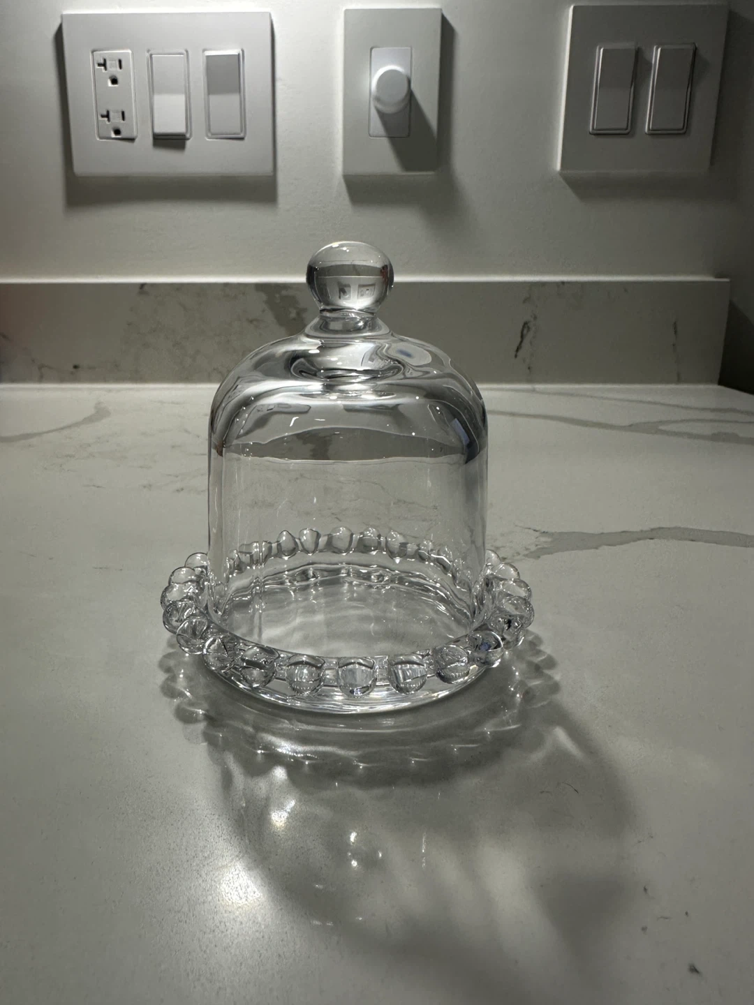 83Selling a lovely glass cloche with a beaded edge! It's perfect for displaying baked goods or other small items. It's in great condition and ready for a new home