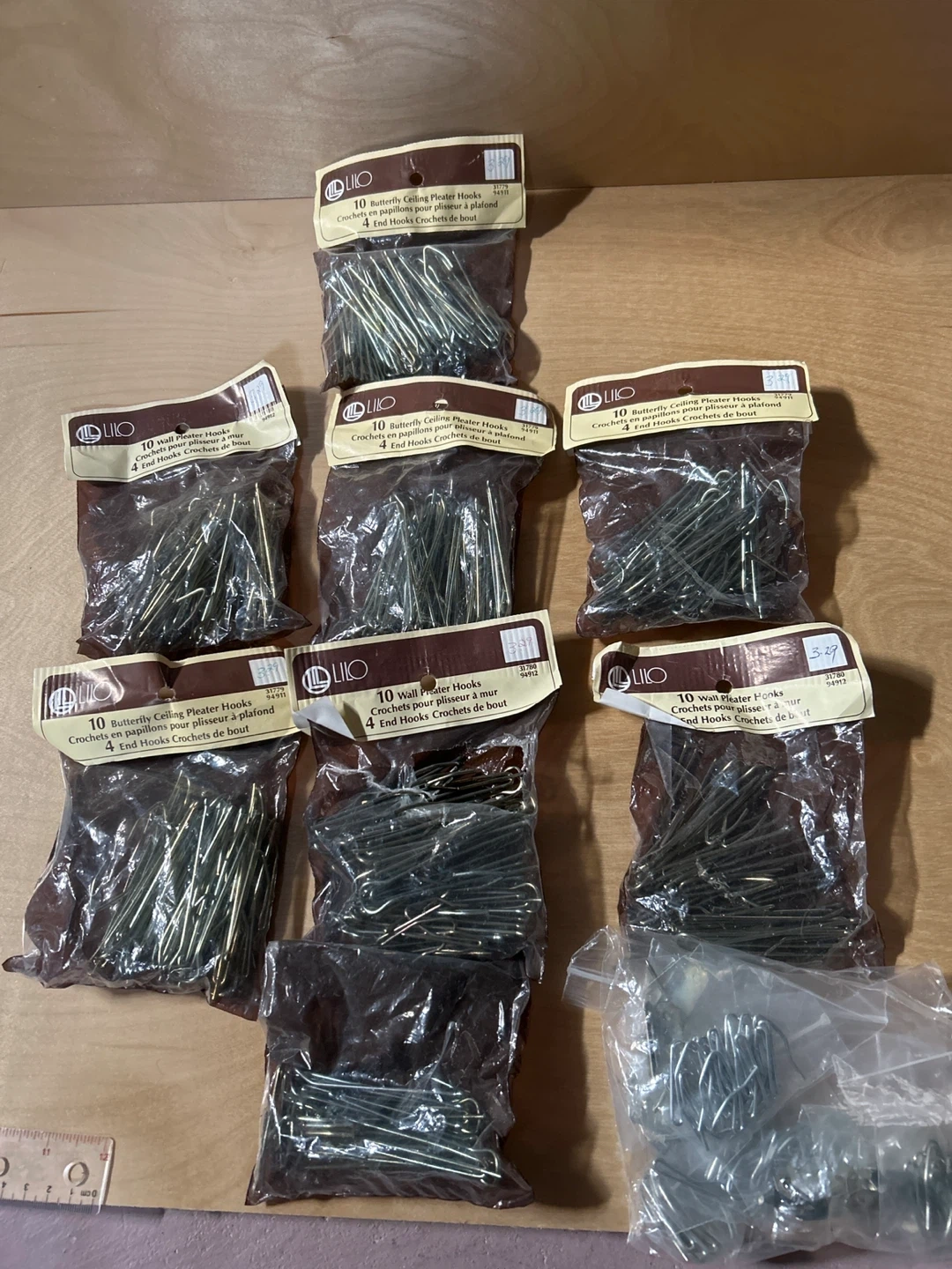 60I have a bunch of LILO pleater hooks for sale! There are both butterfly ceiling and wall pleater hooks. Each package contains 10 pleater hooks and 4 end hooks.