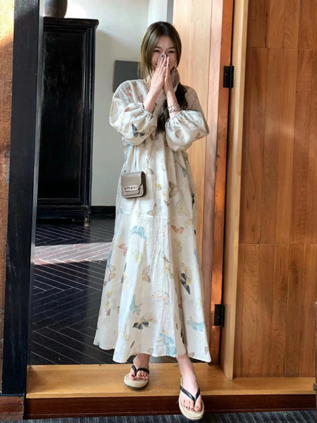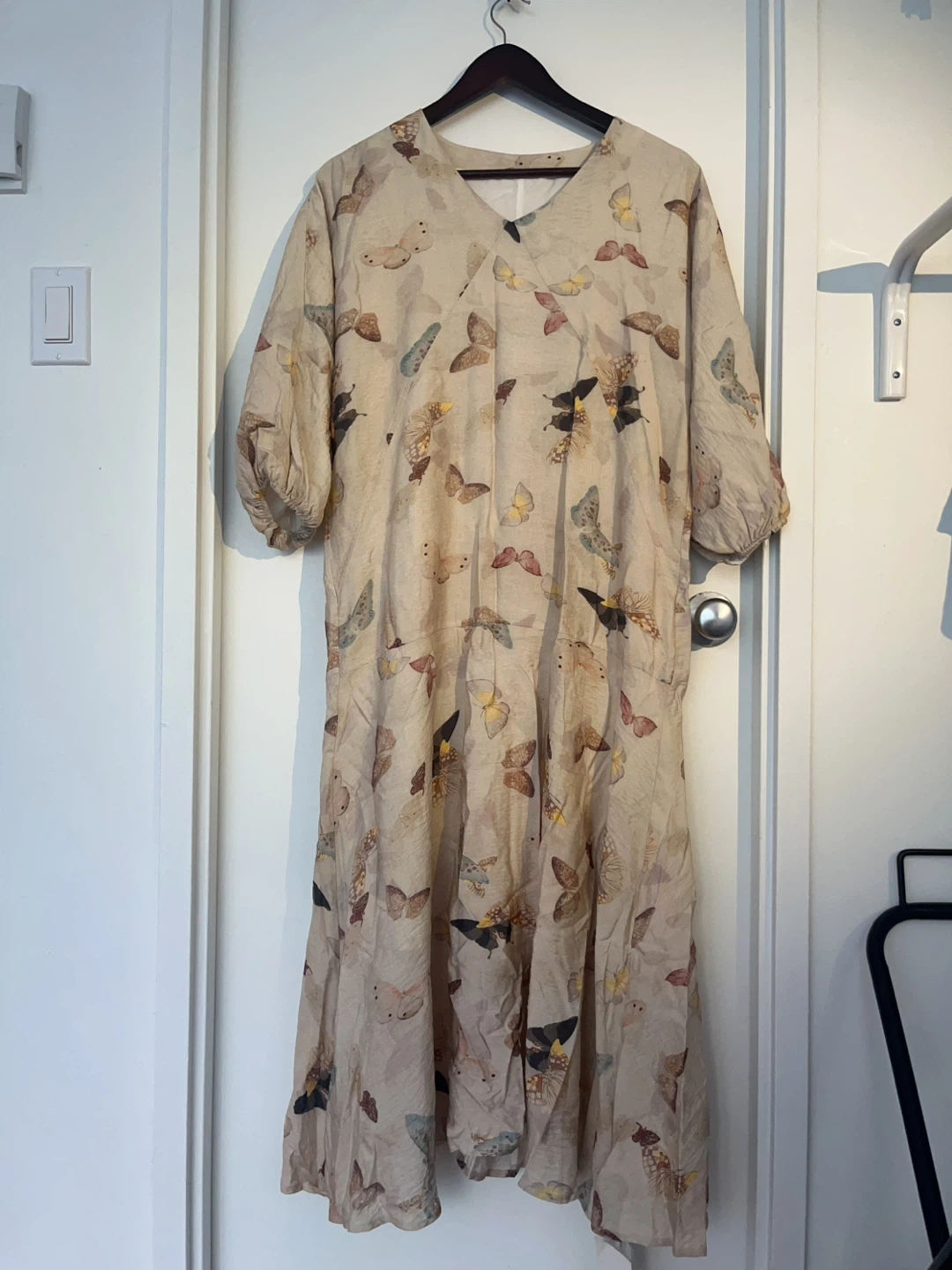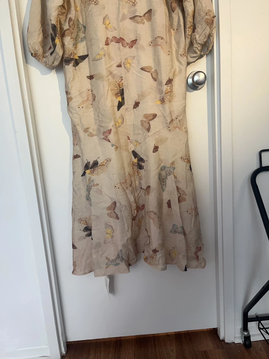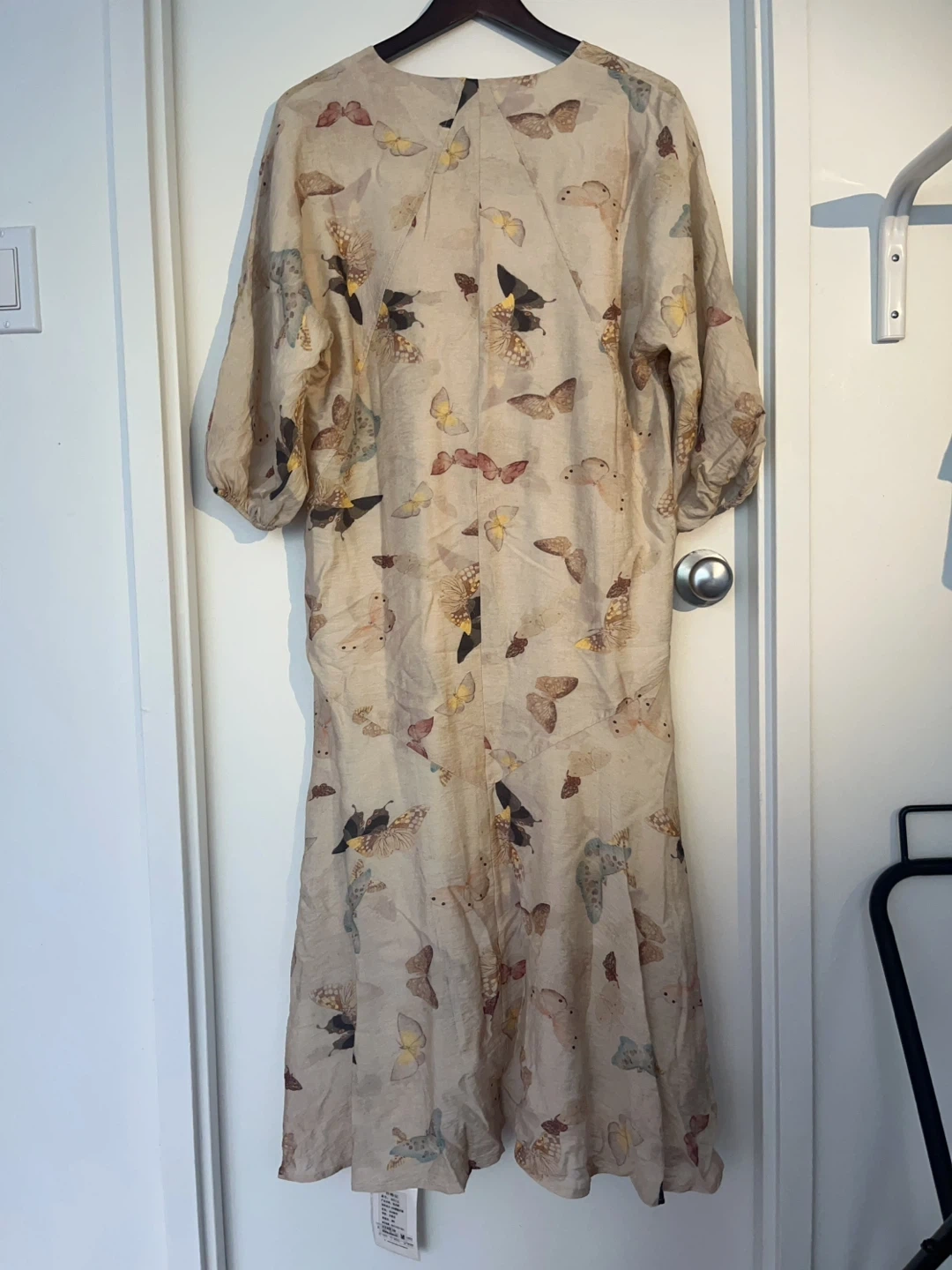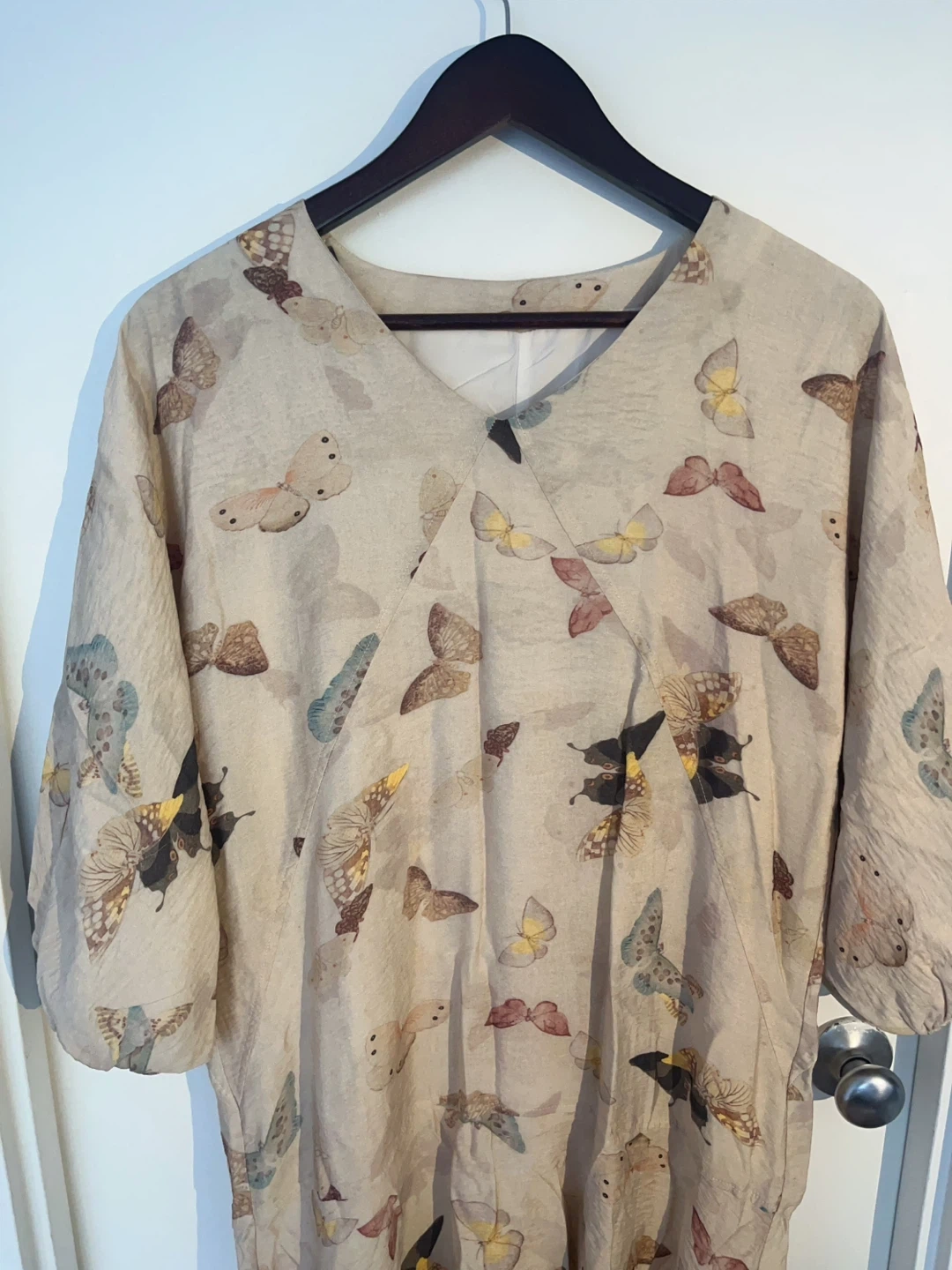 A lovely dress with an all-over butterfly print! Brand new with labels. It features a V-neck and comfortable sleeves. Perfect for a casual day out or a special occasion. Recommended size 8-10