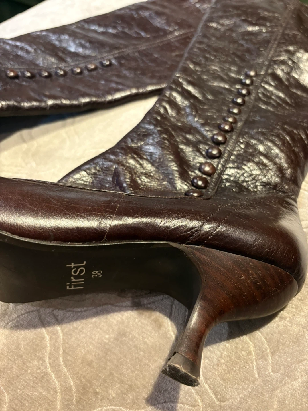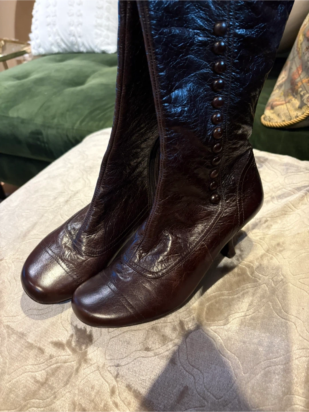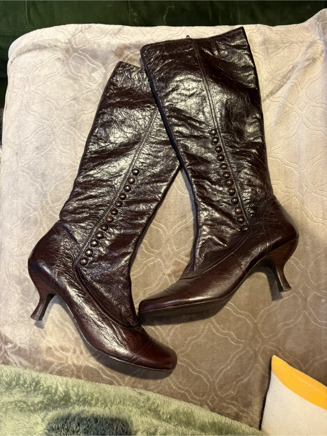 Beautiful knee-high brown leather/ faux-leather? women’s boots.