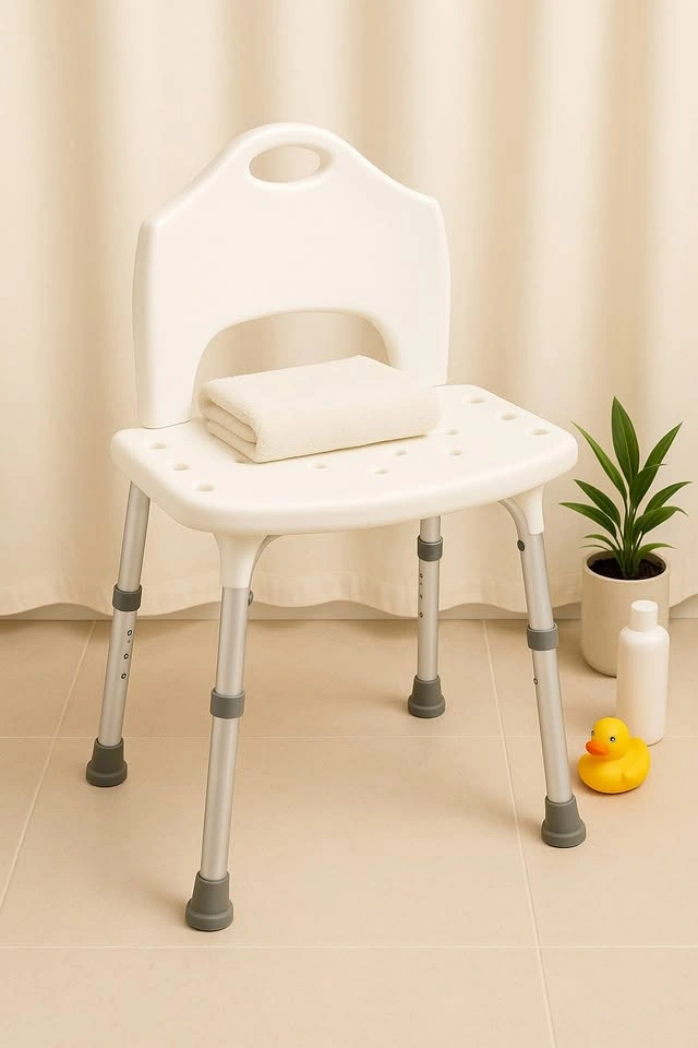 Looking for a safe and comfortable shower experience? Grab this adjustable shower chair with back support and drainage holes! Perfect for seniors, individuals with mobility challenges, or post-surgery recovery. ๐ช โจ Features: Lightweight yet durable plastic seat with ventilation holes Adjustable aluminum legs with non-slip rubber tips Built-in backrest for extra comfort Built-in handle for easy carrying Clean and in great condition! Feel free to message if you have any questions!