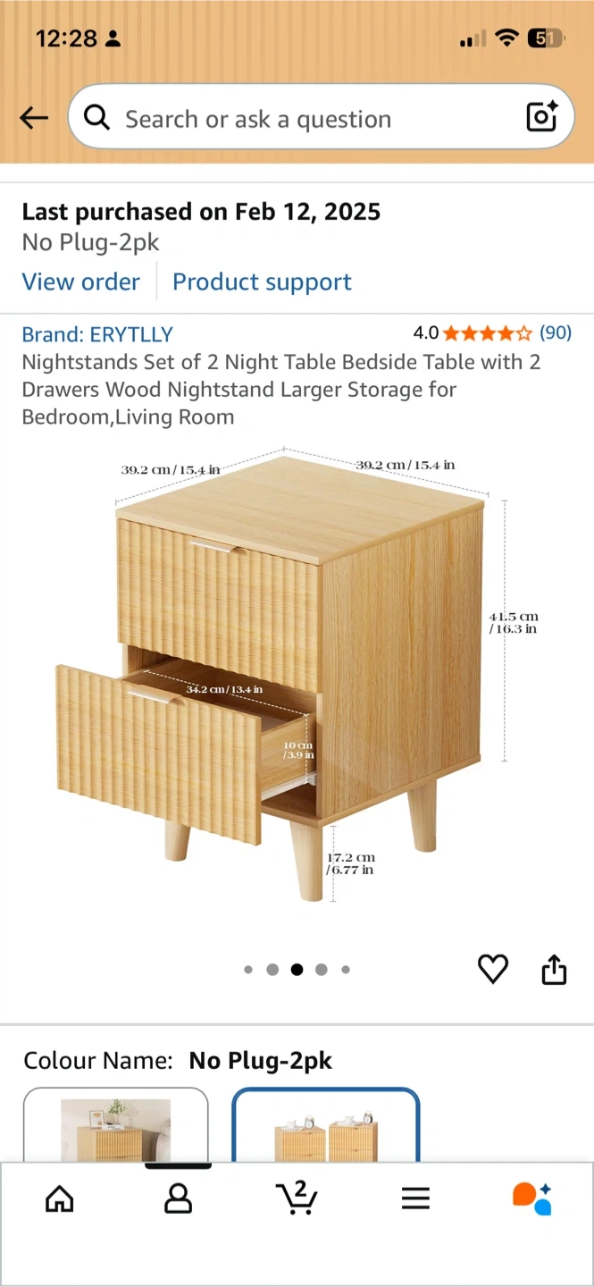This is a set of two ERYTLLY nightstands. Each nightstand has two drawers with wooden construction. The dimensions of each unit are 39.2 cm x 30.4 cm x 41.7 cm.