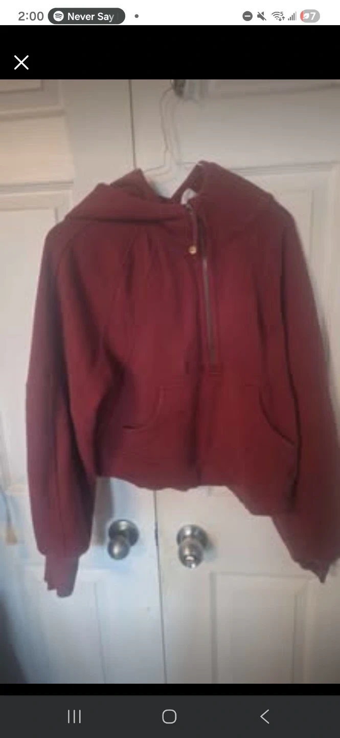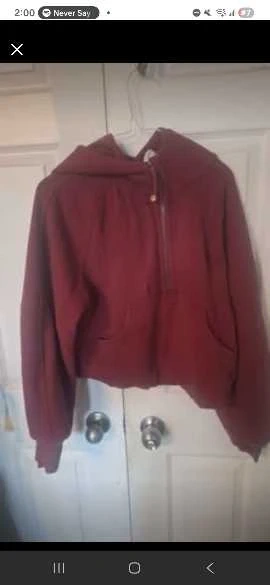 Lululemon Burgundy half zip hoodie. It's a cozy and stylish sweatshirt for everyday wear. The material is soft and comfortable.